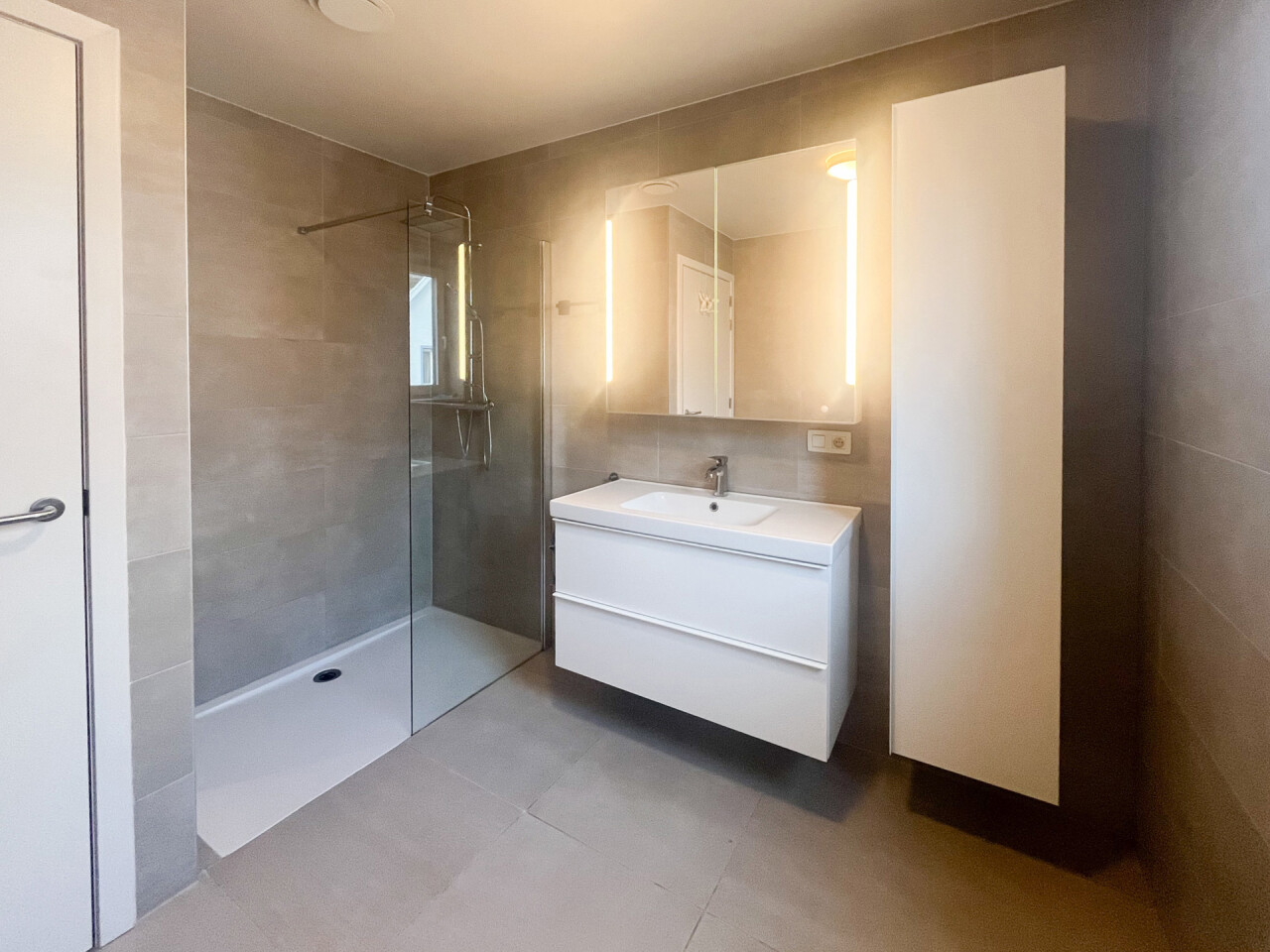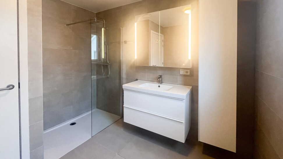 Via de nachthal wandelen we door naar twee ruime slaapkamers, een volledig ingerichte badkamer met inloopdouche en een apart toilet.