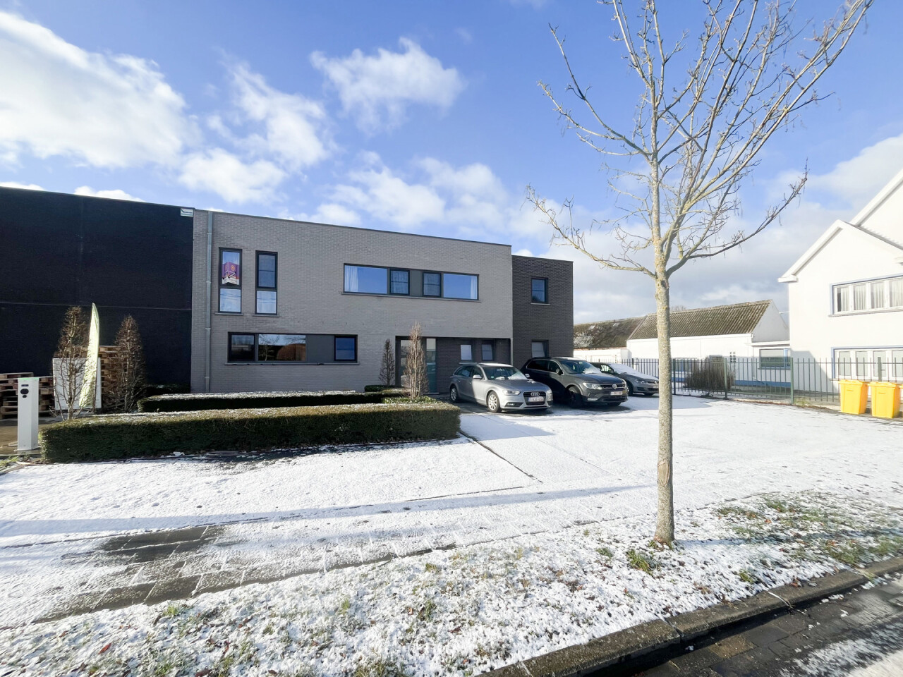 Parkeren kan vooraan het gebouw. In de tuin is een privé-berging voorzien voor fietsen.