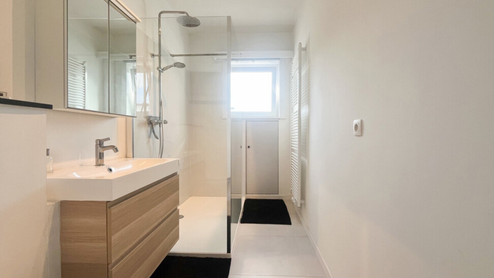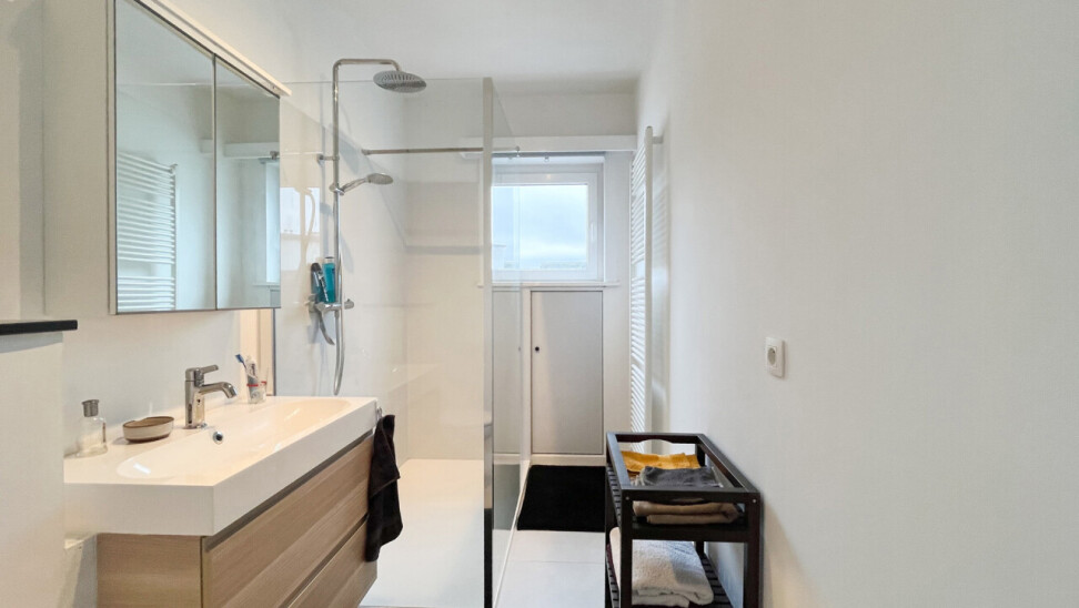 Verder beschikt het appartement over twee slaapkamers en een badkamer met douche, lavabo en toilet.