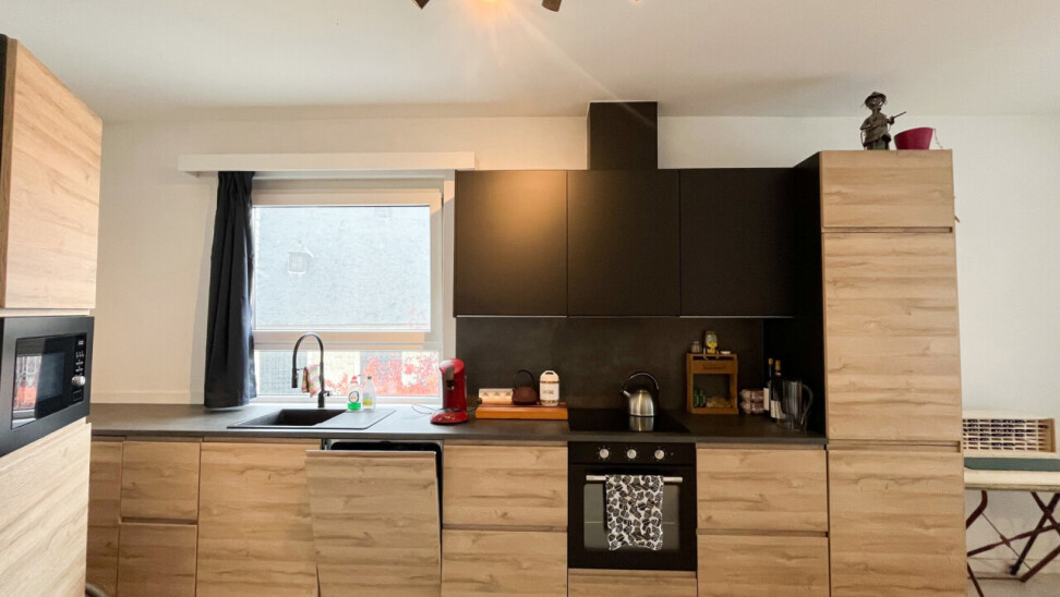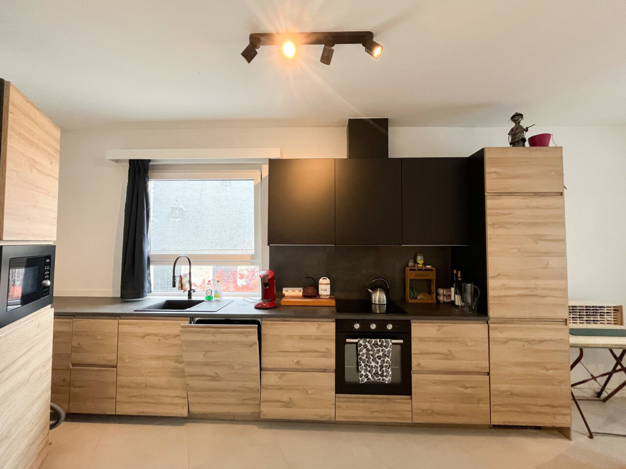 De keuken is geïntegreerd in de leefruimte en is uitgerust met moderne, hoogwaardige keukentoestellen.