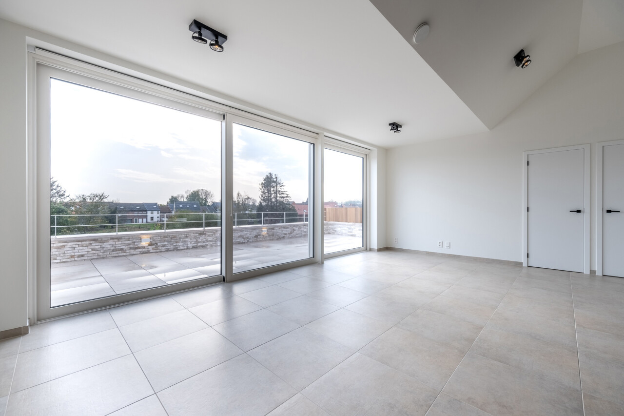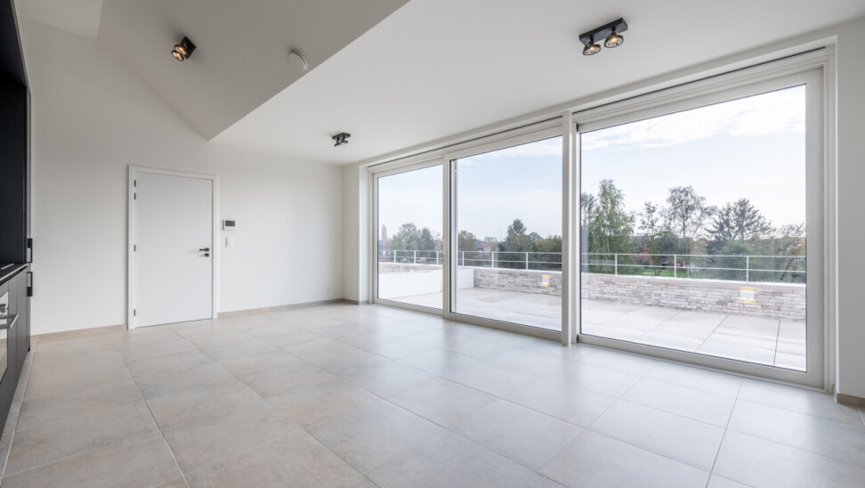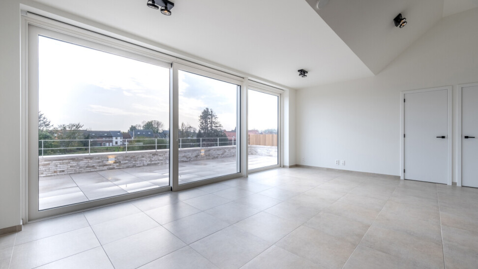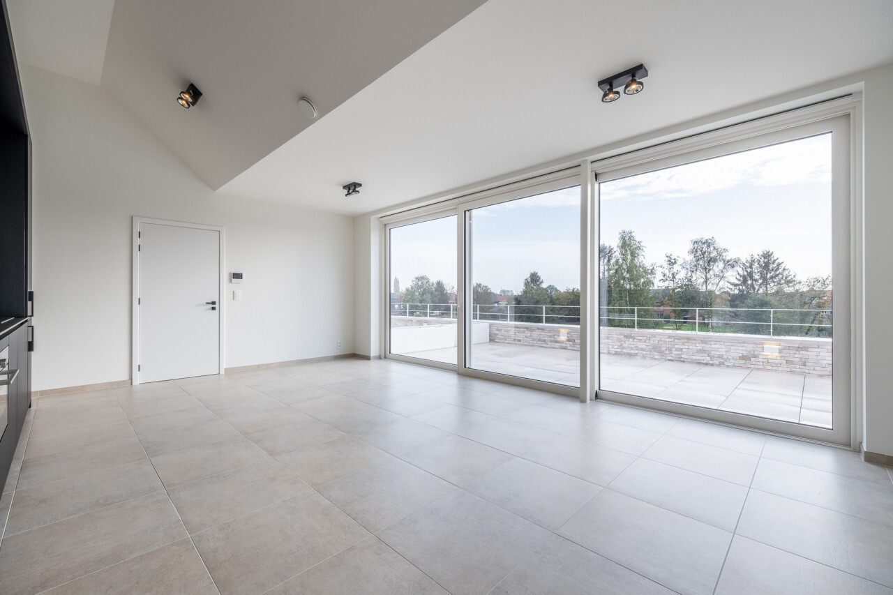 De grote raampartijen in de leefruimte geven toegang tot het zuidgerichte terras van maar liefst 25 m².