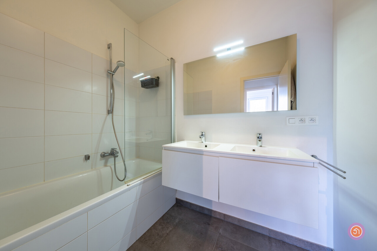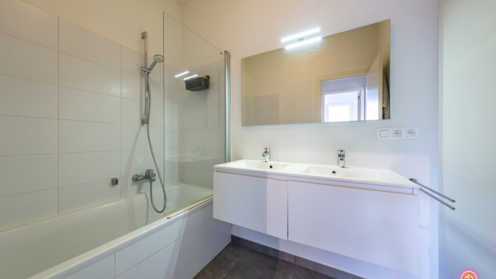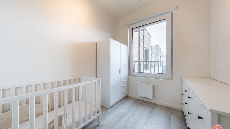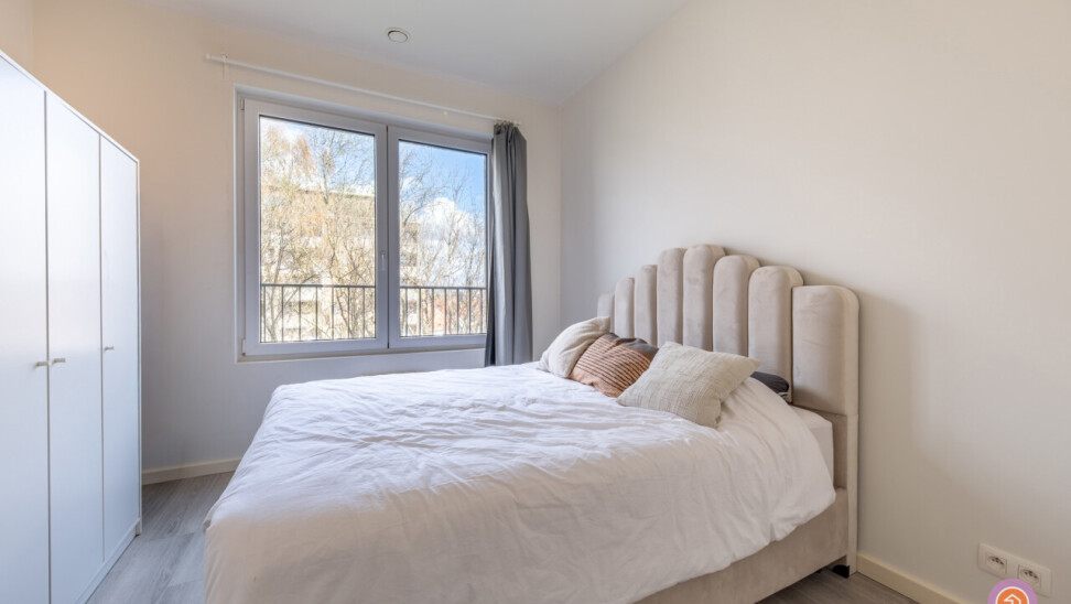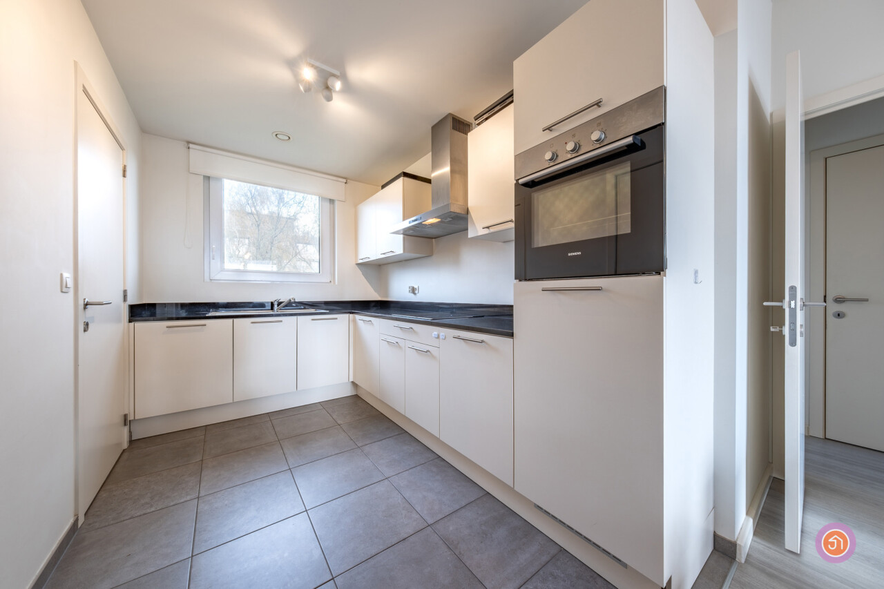Verder biedt het appartement twee slaapkamers, een toilet en een badkamer voorzien van douche in bad en dubbele lavabo.