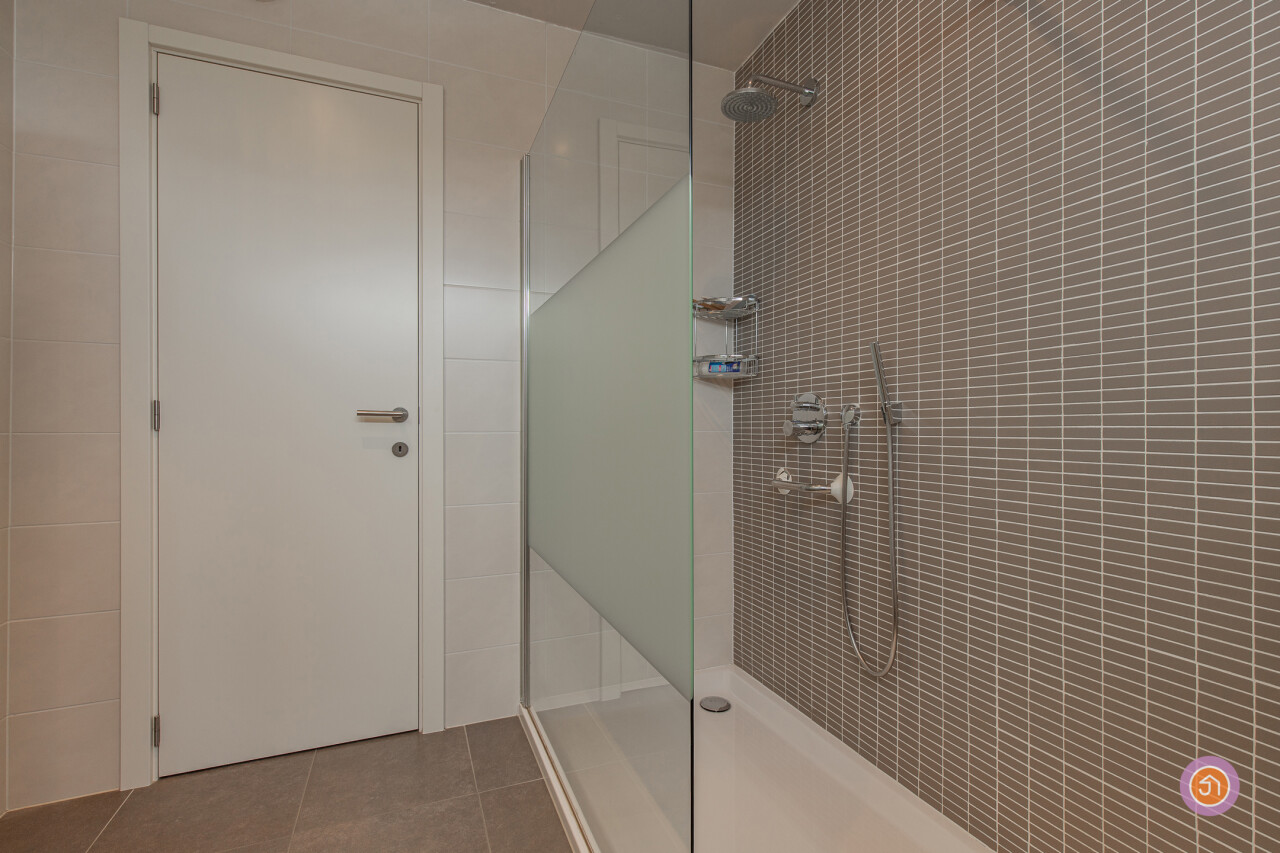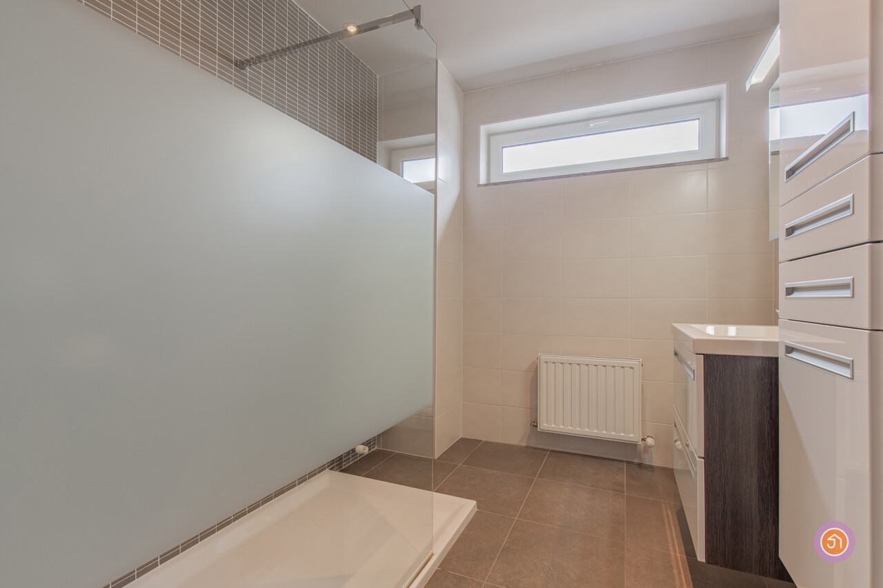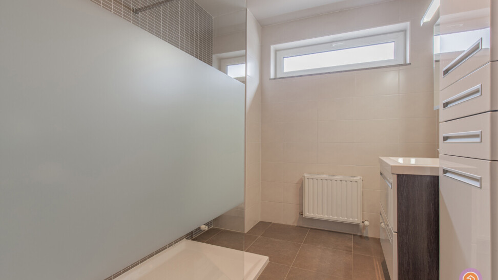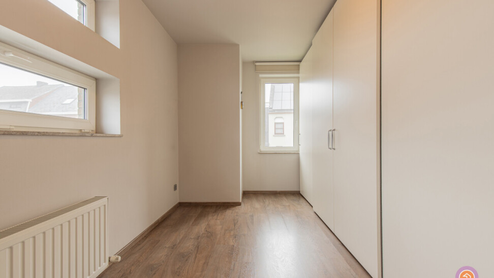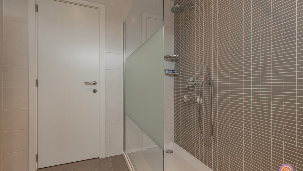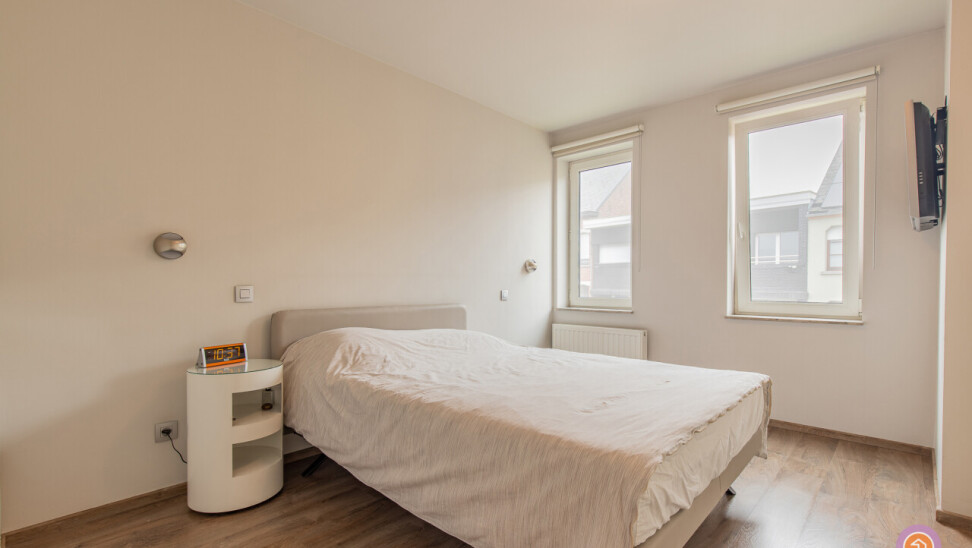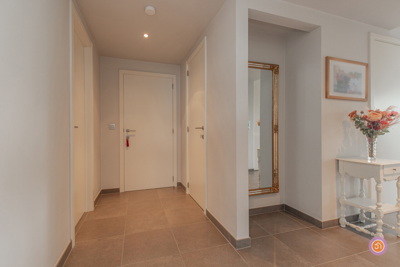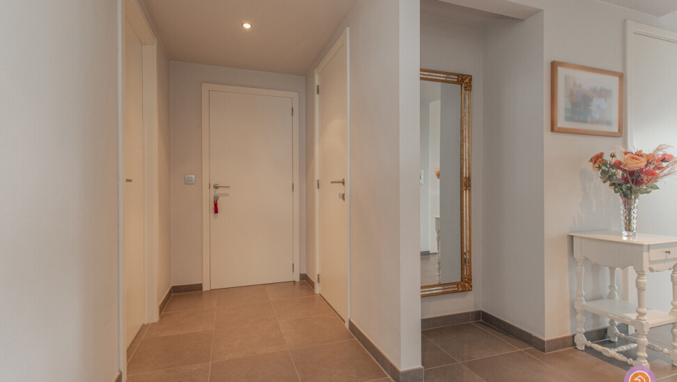 Bij het betreden van het appartement komen we terecht in de inkomhal die toegang verleent tot verschillende ruimtes. We vinden twee ruime slaapkamers terug voorzien van ingemaakte kasten. De badkamer is voorzien van alle comfort en beschikt over een inloopdouche en lavabo.