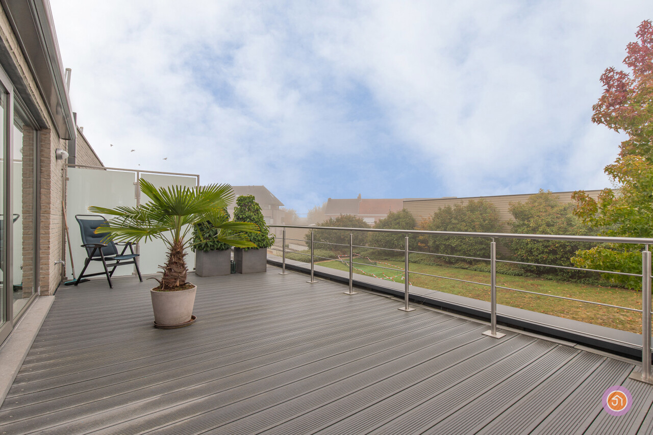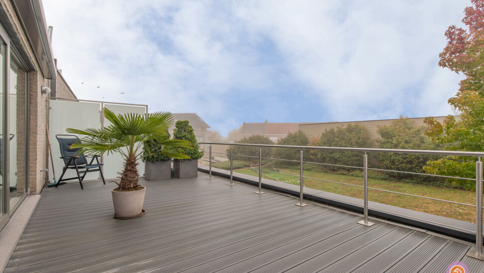 Het zuidwest georiënteerd terras van 23 m² is de ideale plaats om te genieten van een heerlijk ontbijt of een aperitief tijdens de avond. Tevens kan je hier genieten van een open zicht op de gemeenschappelijke tuin.