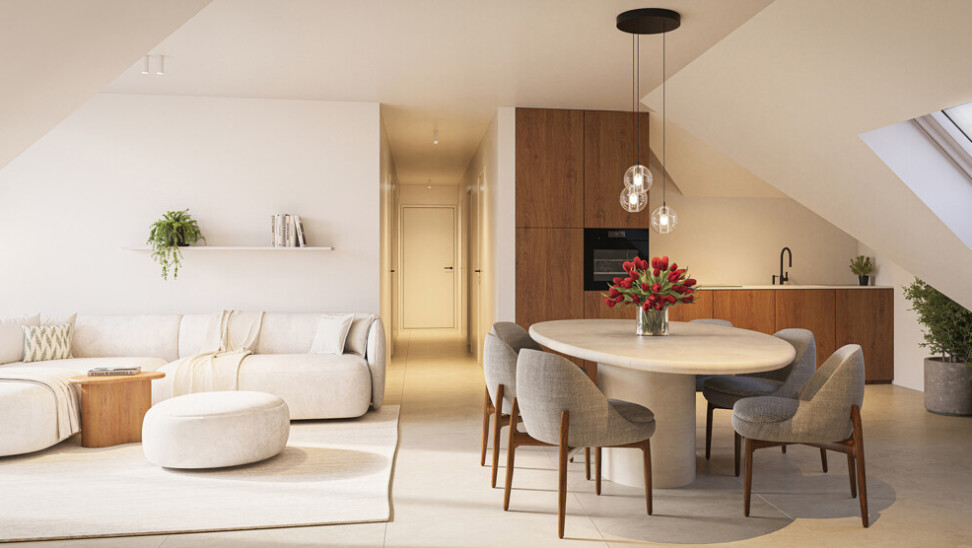 De architectuur combineert strakke lijnen, grote raampartijen en kwalitatieve afwerking in een kleinschalige residentie met veel aandacht voor wooncomfort.