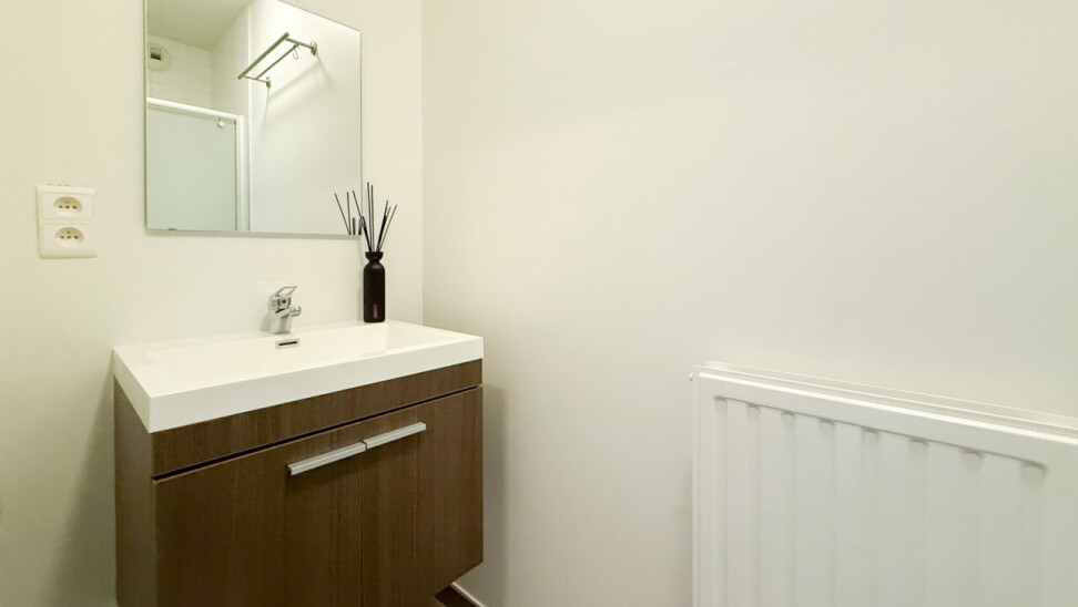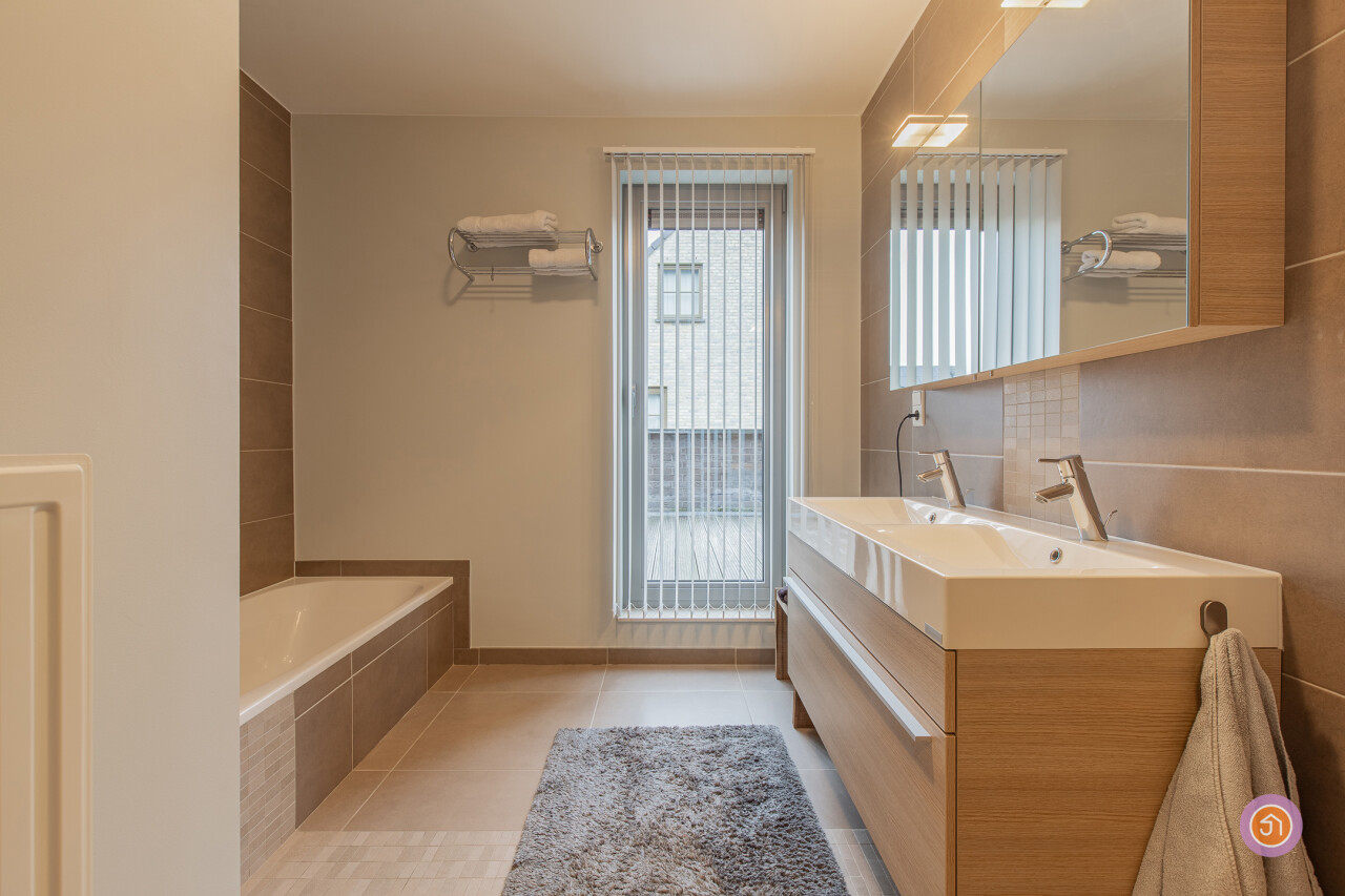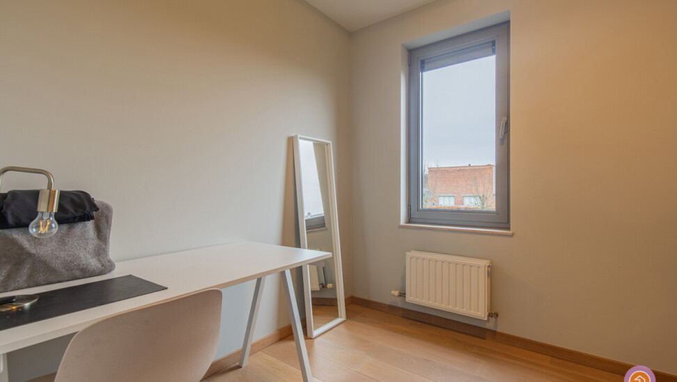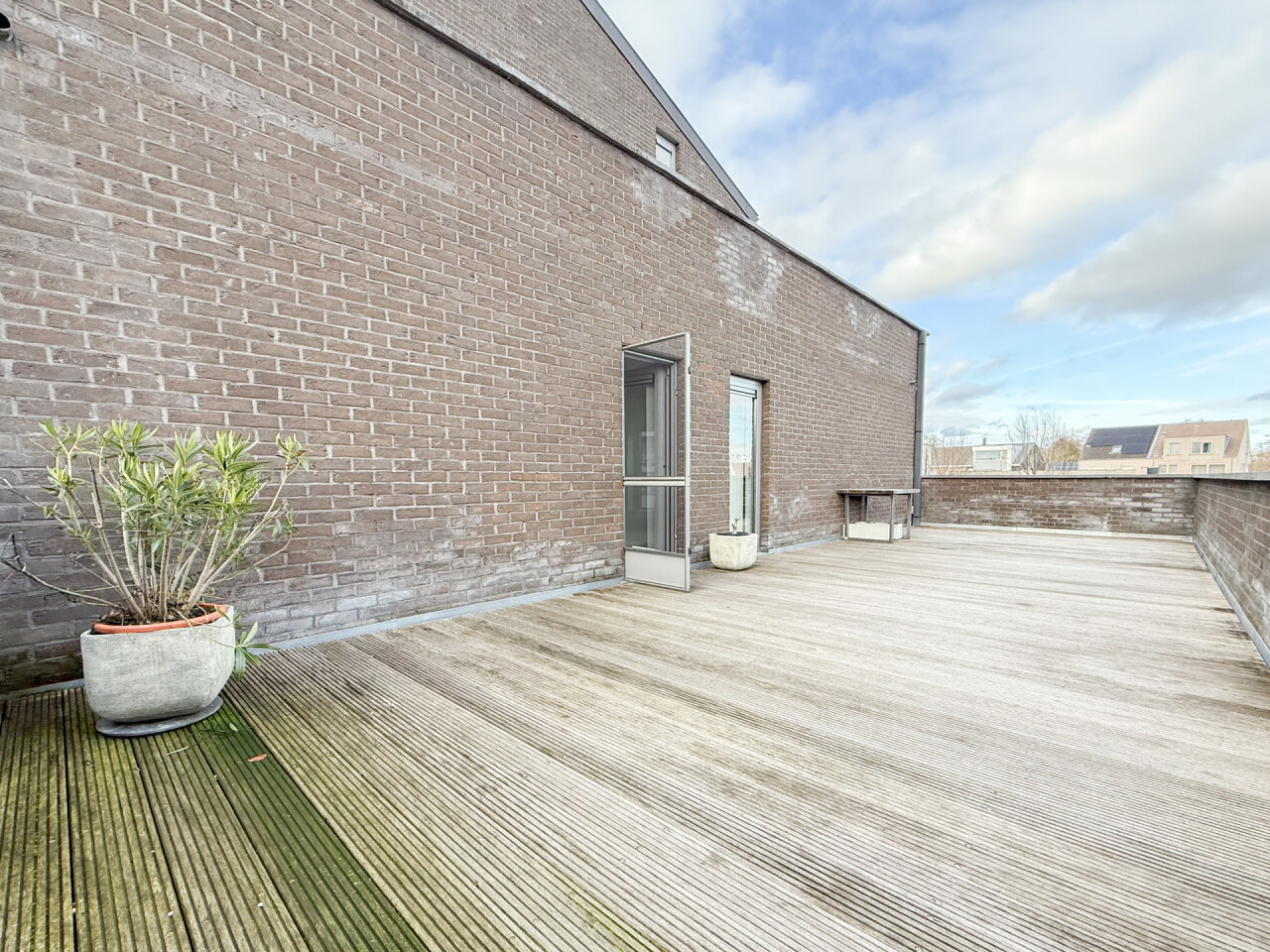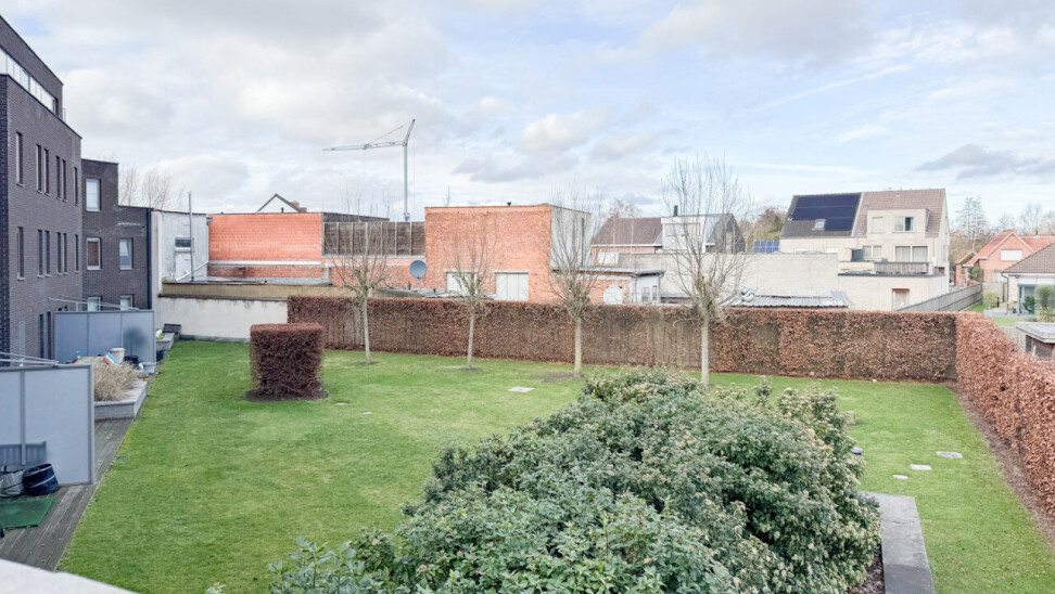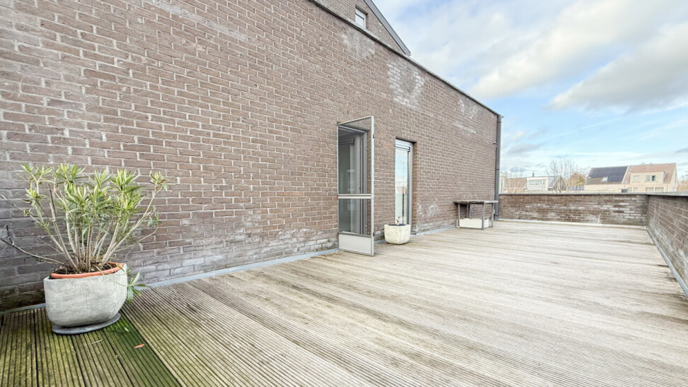 Het appartement beschikt over een tweede terras met een oppervlakte van maar liefst 45 m². Vanop dit terras kijk je uit op de gemeenschappelijke tuin.