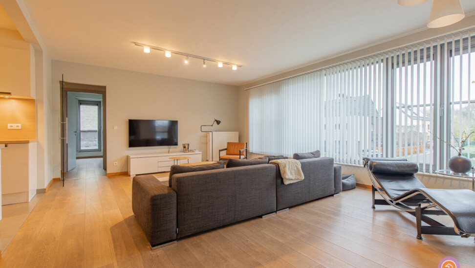 De raampartijen in de leefruimte geven toegang tot het terras aan de voorkant met een prachtig uitzicht op de Schelde.