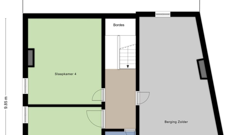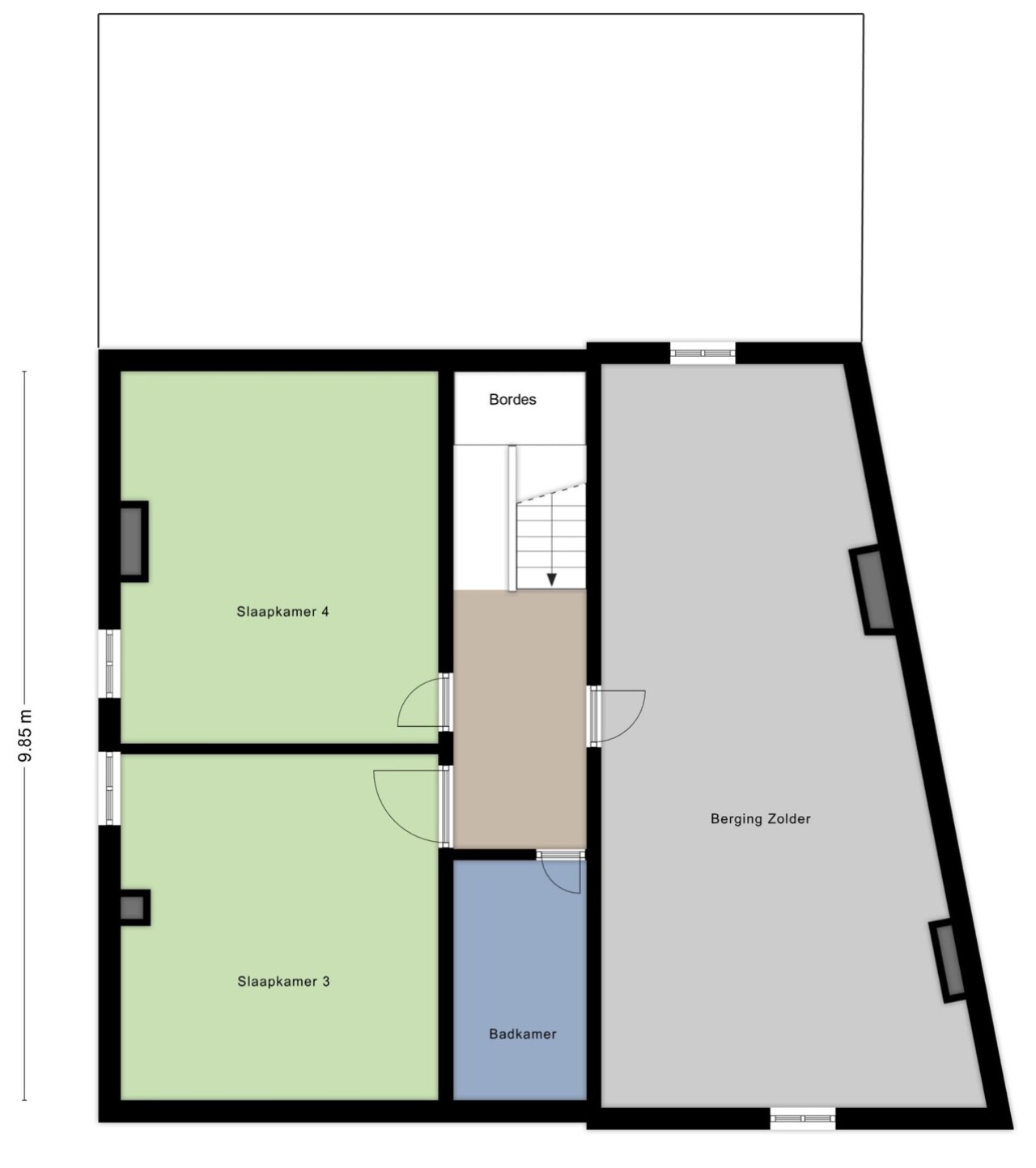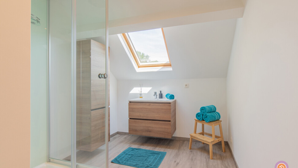 De tweede verdieping is opgedeeld in twee slaapkamers, een badkamer en een zolderkamer met vele mogelijkheden.