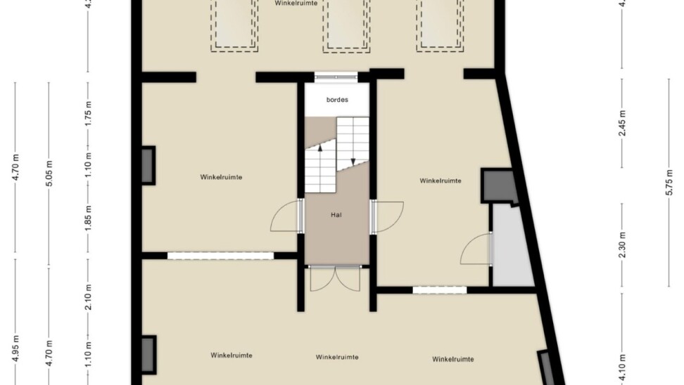 Buiten de handelszaak biedt het pand een volledige kelderverdieping, deze kan je perfect gebruiken voor opslag. De kelderverdieping bestaat uit vijf kamers en een garage.