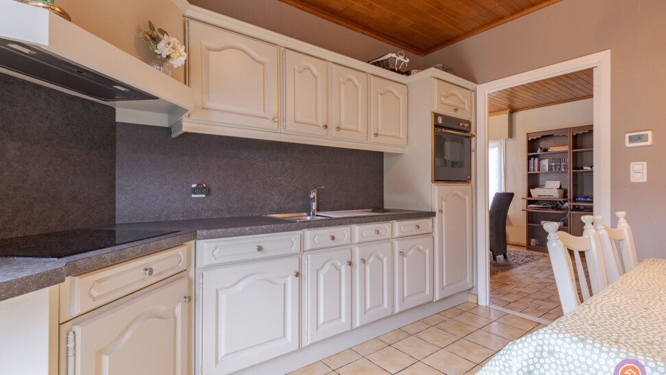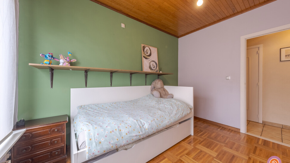 Een extra troef is de zeer ruime zolder, bereikbaar via een zolderluik in de garage. Deze doet dienst als opbergruimte.