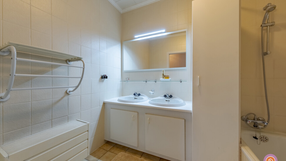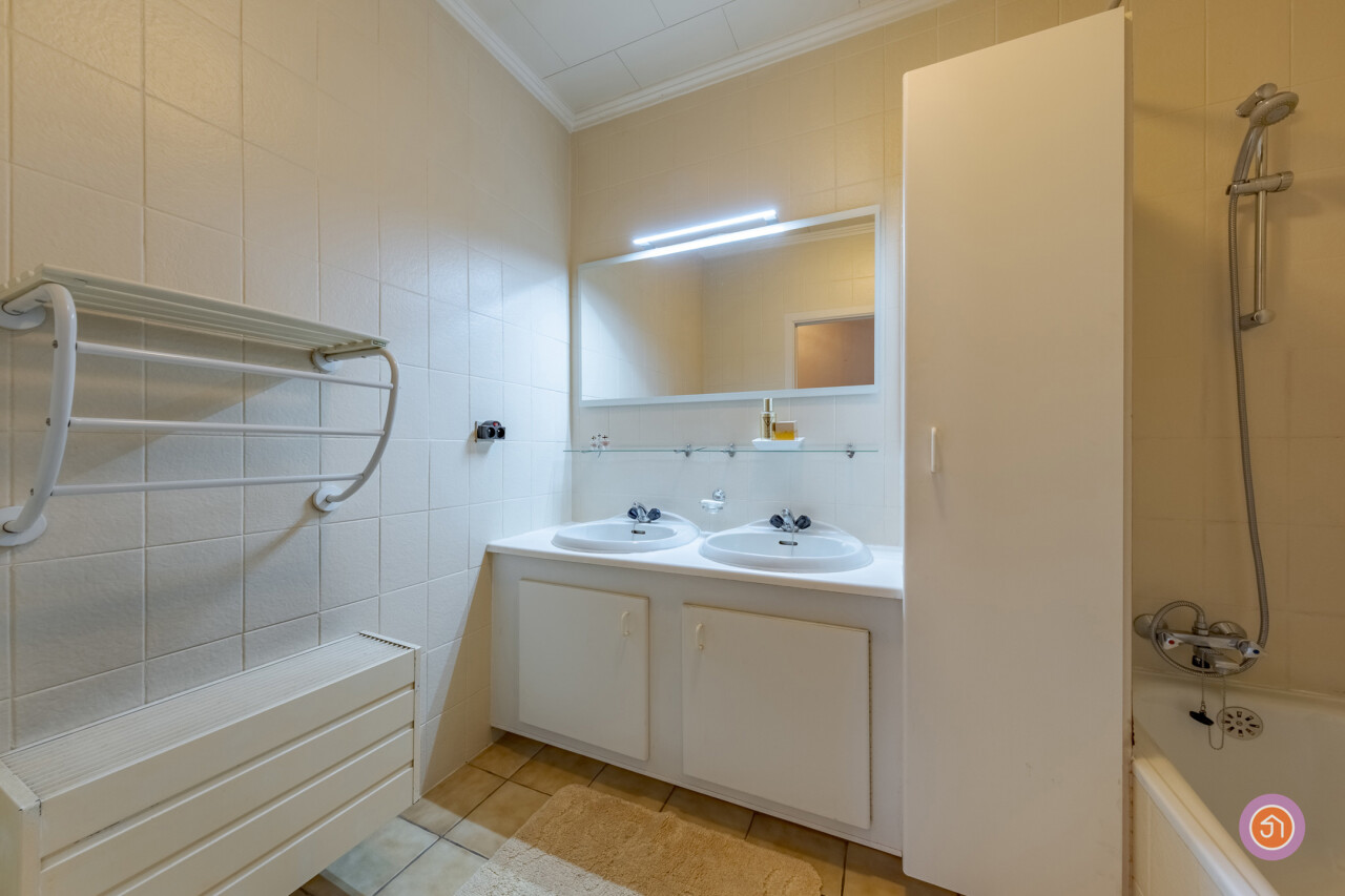 Verder vinden we drie slaapkamers terug, een gastentoilet en een badkamer, uitgerust met een douche in bad en dubbele lavabo.