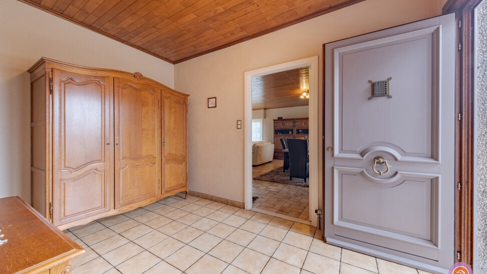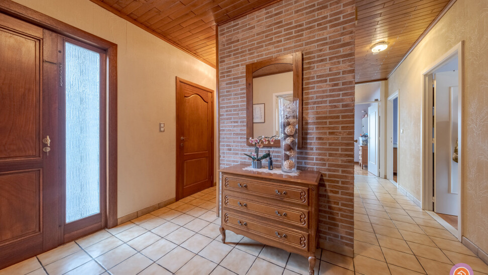 Bij het betreden van de woning komen we in de inkomhal, die toegang geeft tot de verschillende ruimtes.
