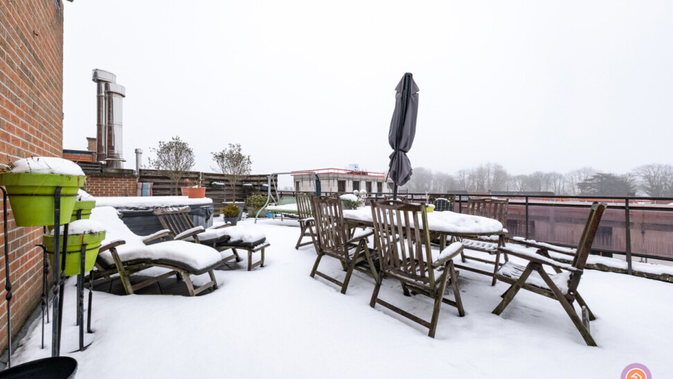 Wanneer we de berging doorlopen, treffen we een ruim terras aan van maar liefst 65 m². Genieten van een aperitief was nog nooit zo aangenaam.