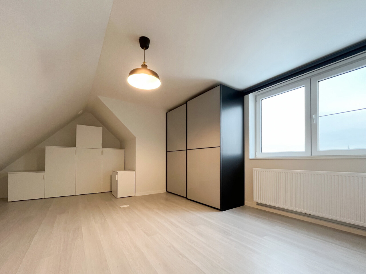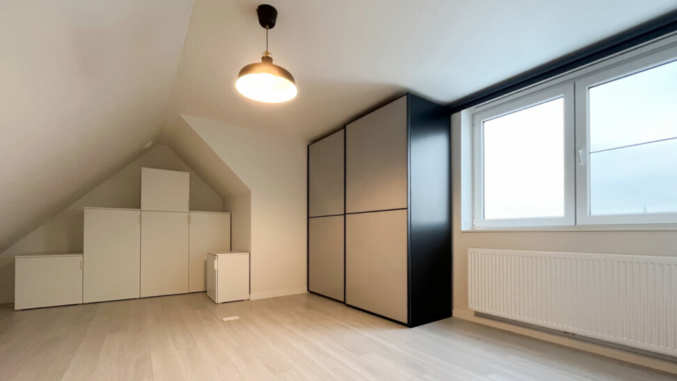 Wanneer we de trap naar boven nemen komen we in een mooie, ruime slaapkamer met mogelijkheid voor integratie van bureau.