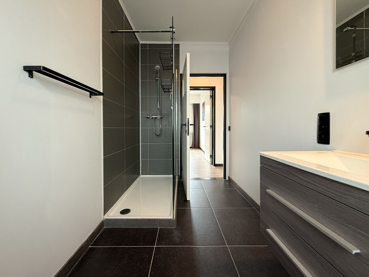 De badkamer op deze verdieping beschikt over een inloopdouche en een tweede toilet.