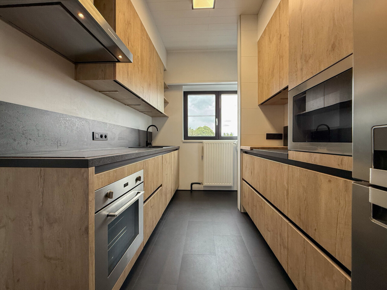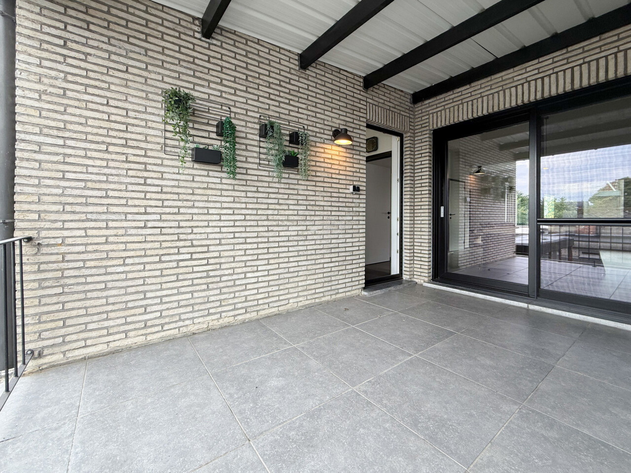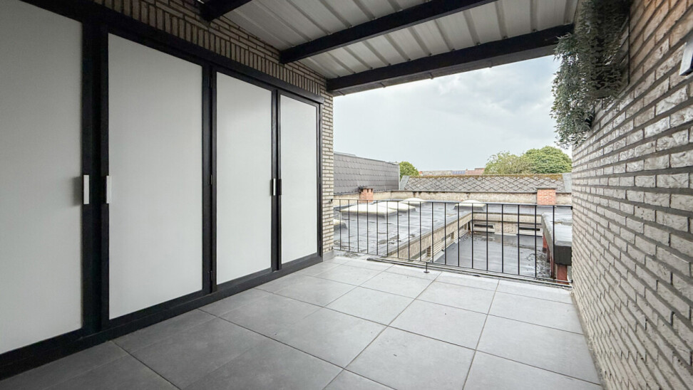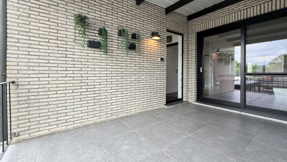 Het aangename terras kan je betreden via de schuifdeur in de leefruimte, maar ook via een deur in de keuken.