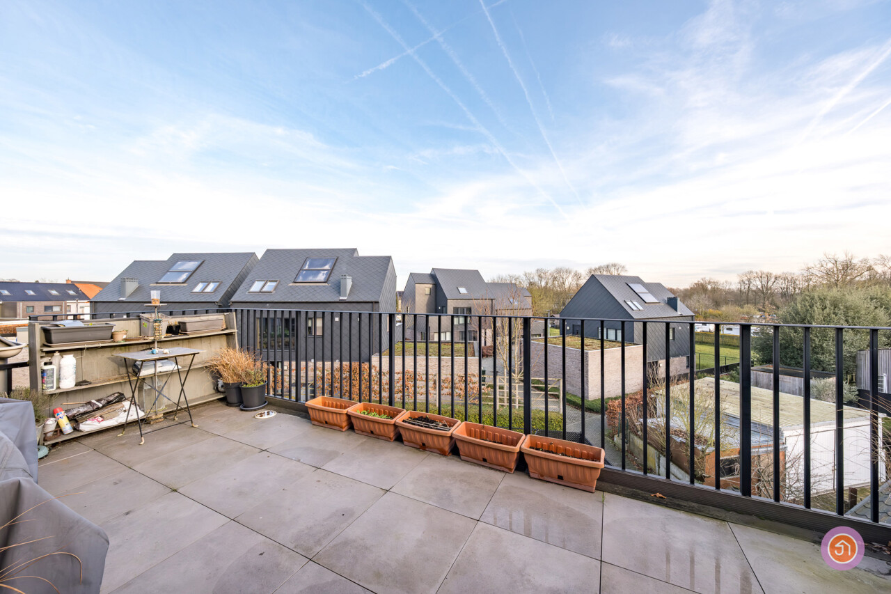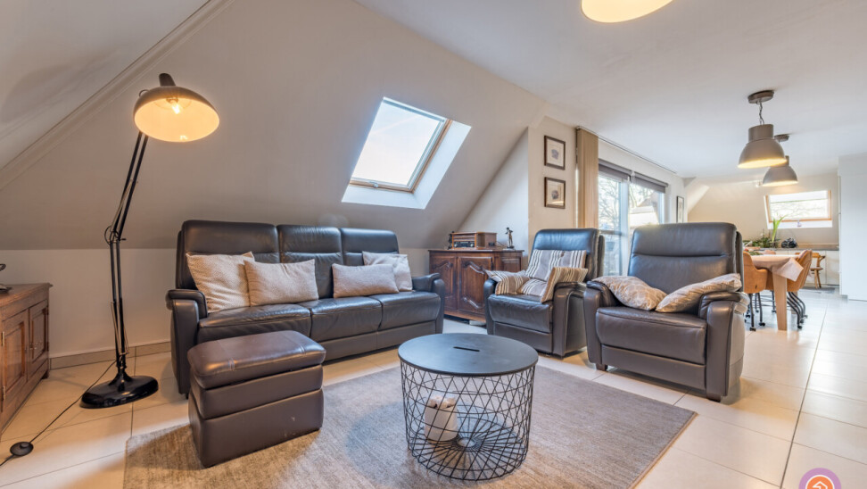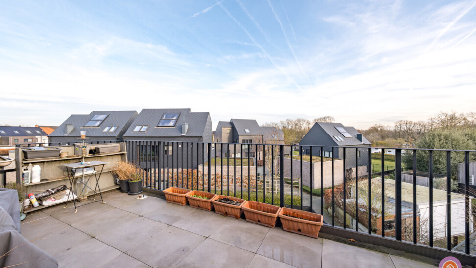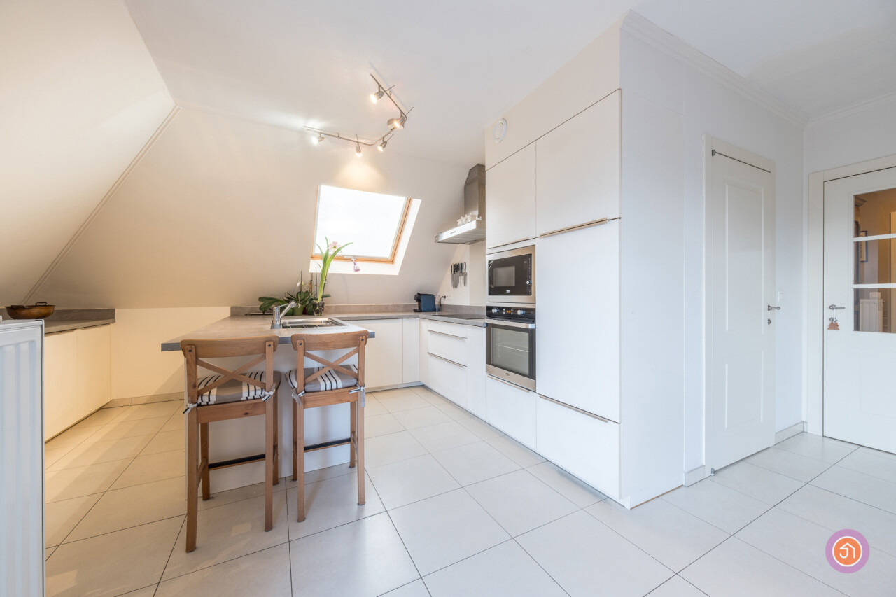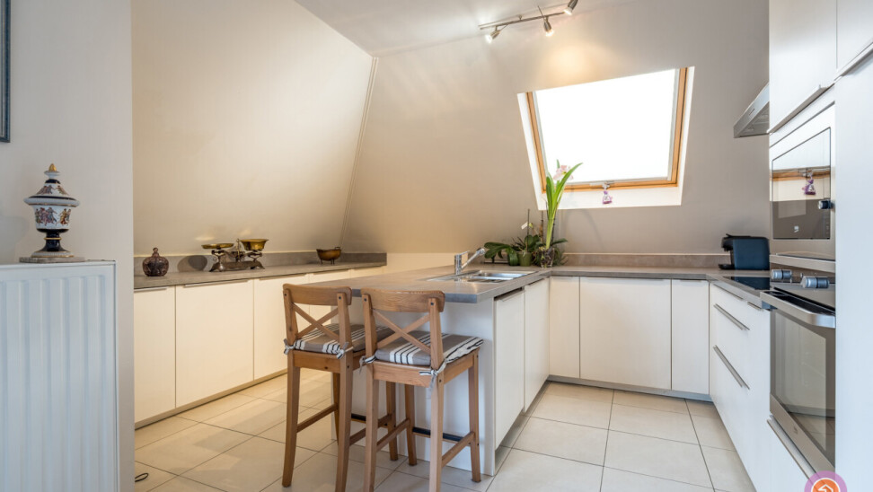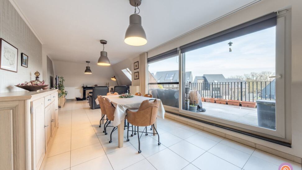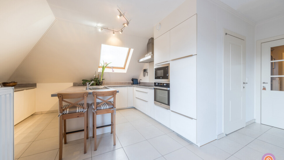 Wanneer we doorwandelen, komen we terecht in de lichtrijke leefruimte met praktische keuken voorzien van alle toestellen en aparte berging. Aansluitend aan de leefruimte bevindt zich het zonnige terras. Genieten van een aperitief was nog nooit zo aangenaam.
