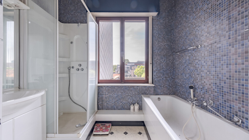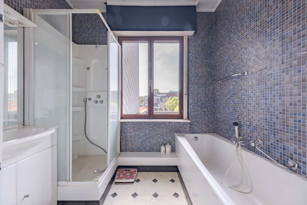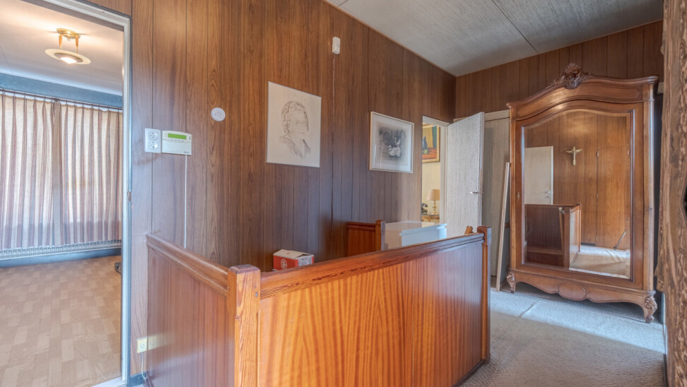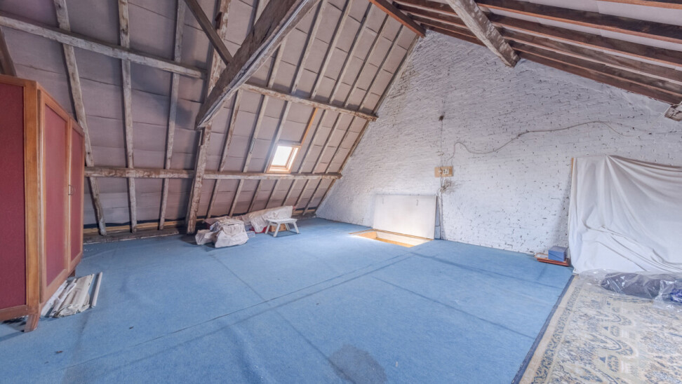 Op de eerste verdieping vinden we drie volwaardige slaapkamers en een badkamer voorzien van ligbad, douche en lavabo. Via een vaste trap bereiken we de zolder van maar liefst 48 m² – ideaal als opslagruimte, hobbyruimte of zelfs voor het creëren van extra slaapkamers.