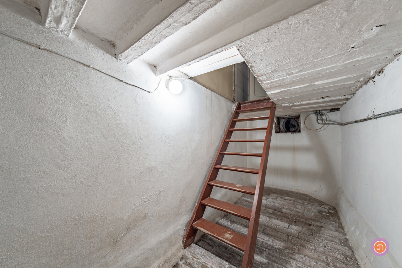 Via de vaste trap bereiken we de zolder die als grote extra ruimte kan ingericht worden of opgedeeld in slaapkamers