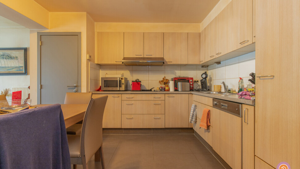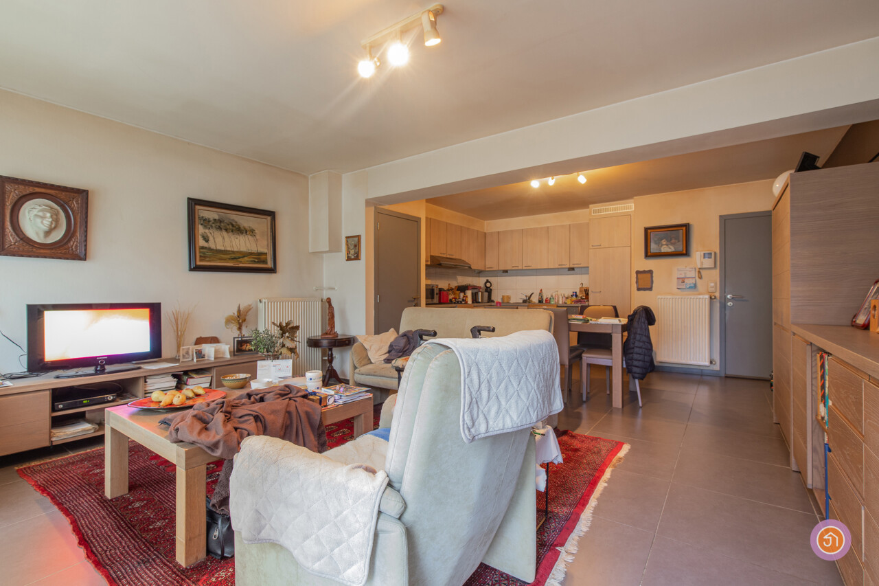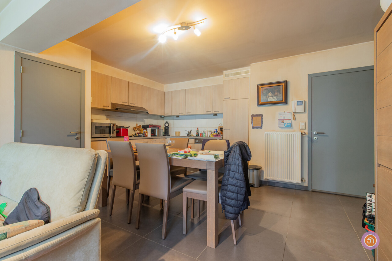 Dit appartement beschikt over een inkomhal met ingemaakte kasten, een ruime en lichtrijke leefruimte met volledig geïnstalleerde, open keuken. Verder beschikt het appartement over twee slaapkamers, een berging, een badkamer met inloopdouche, lavabo en toilet en een gastentoilet.
