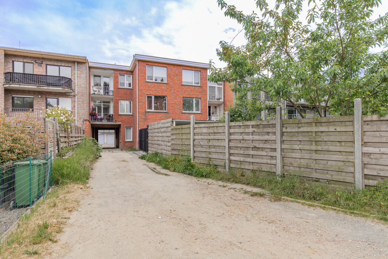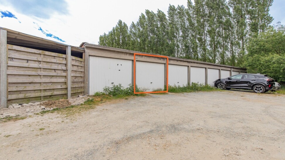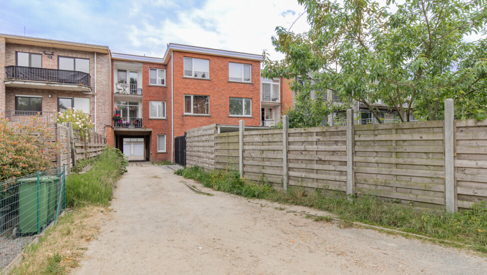 De garagebox kan je bereiken via een doorrit rechts van het appartementsgebouw.