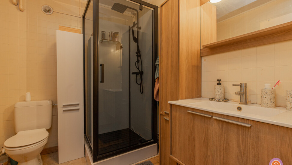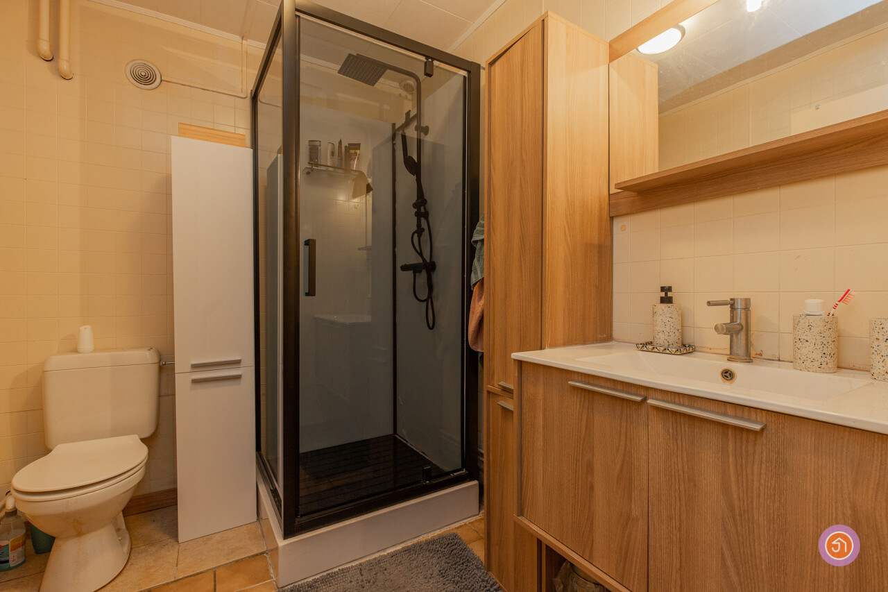 We betreden de woning via een inkomhal die toegang geeft tot de ruime eetkamer en een gezellige zithoek. Aansluitend treffen we de keuken, de badkamer en een gelijkvloerse slaapkamer die ook dienst kan doen als bureau.