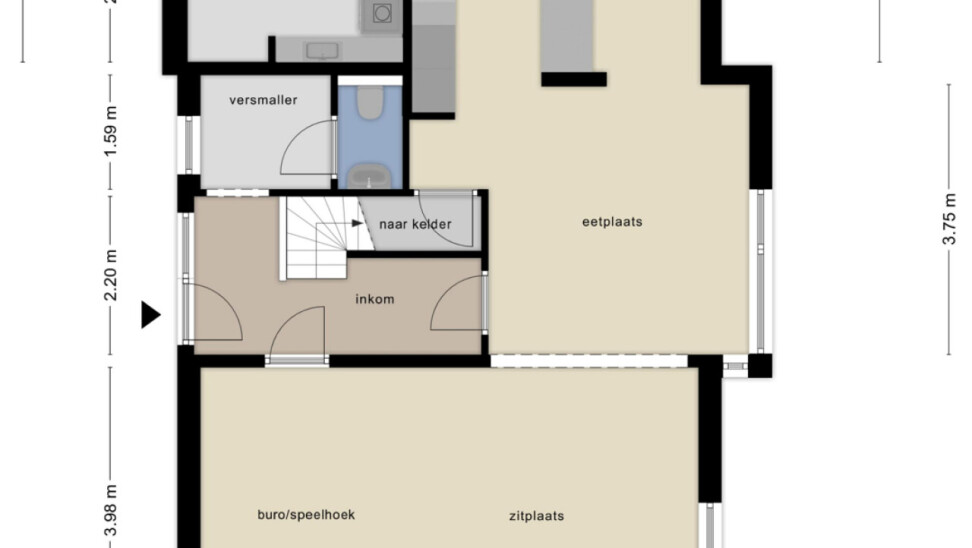 Bij binnenkomst via de linkerkant van de woning, betreden we de inkomhal die rechtstreeks toegang biedt tot de ruime en lichte leefruimte. Deze veelzijdige leefruimte biedt plaats voor zowel leefruimte in combinatie met een bureau. Aansluitend vind je de eetkamer, die overgaat in de open keuken met zicht op de tuin. Naast de keuken bevindt zich een praktische wasplaats/berging, een douche en toegang tot de tuin.