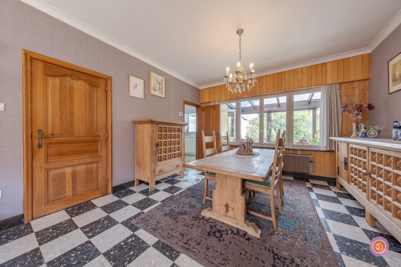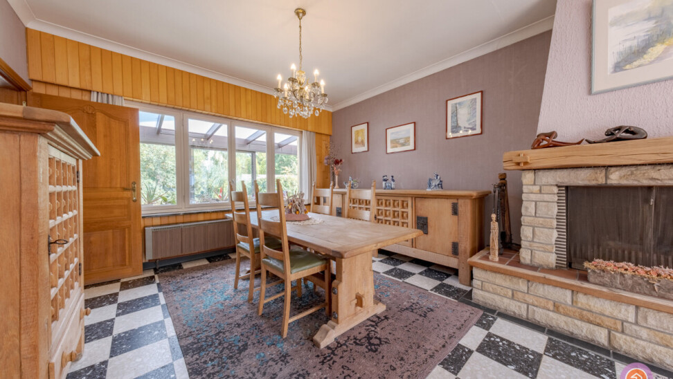 We komen binnen via een inkomhal die toegang verleent tot de ruime leefruimte met aansluitend de geïnstalleerde keuken. De vele raampartijen in de leefruimte zorgen voor een overvloed aan lichtinval. Verder biedt het gelijkvloers een toilet, een badkamer en een ruime veranda die een prachtig zicht biedt op de tuin.