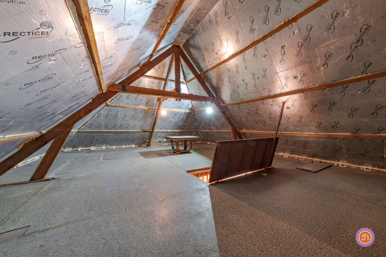 Verder beschikt de woning over een zolder van 60 m² die je kan bereiken via een vaste trap. De zolder werd niet ingericht, maar wij zien hier alvast tal van mogelijkheden.