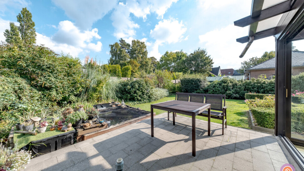 Via de veranda bereiken we de gezellige zuidoost georiënteerde tuin met rustgevend uitzicht.
