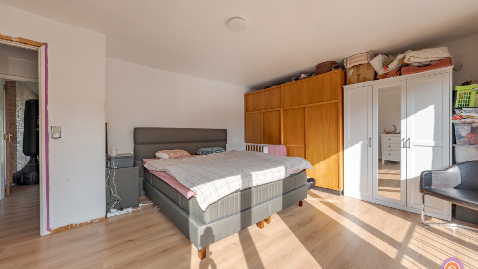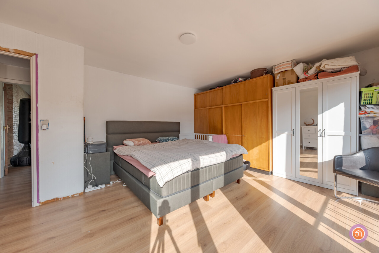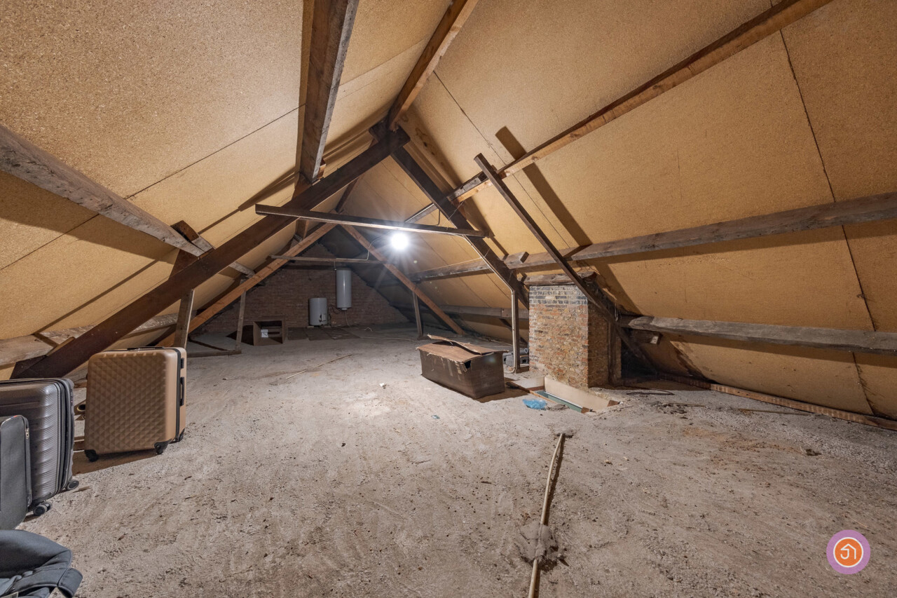 De prachtige trap brengt ons naar de eerste verdieping, waar zich vier slaapkamers en een badkamer bevinden, waarvan één zeer ruime slaapkamer. Deze kan je eventueel opsplitsen naar een slaapkamer met aansluitende dressing. Momenteel wordt de eerste verdieping gebruikt als woonst, waardoor je kan wonen en renoveren tegelijk.