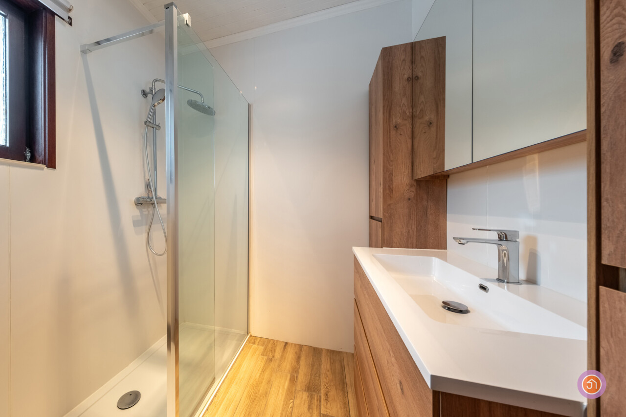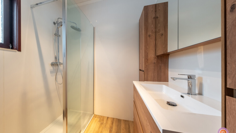 Op de gelijkvloerse verdieping bevindt zich nog een gerenoveerde badkamer met lavabo en douche en een berging.