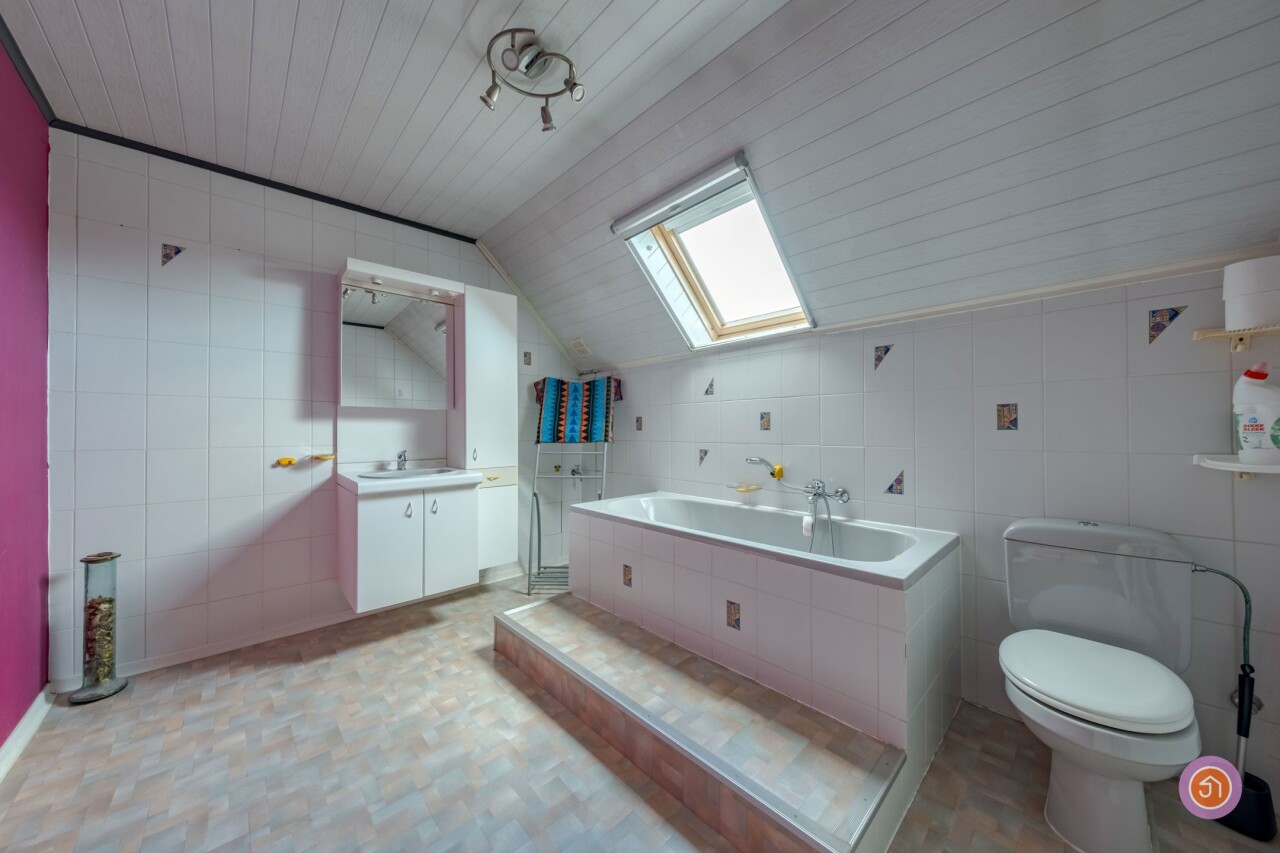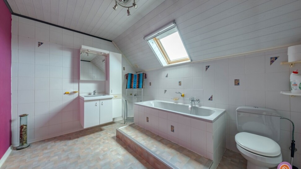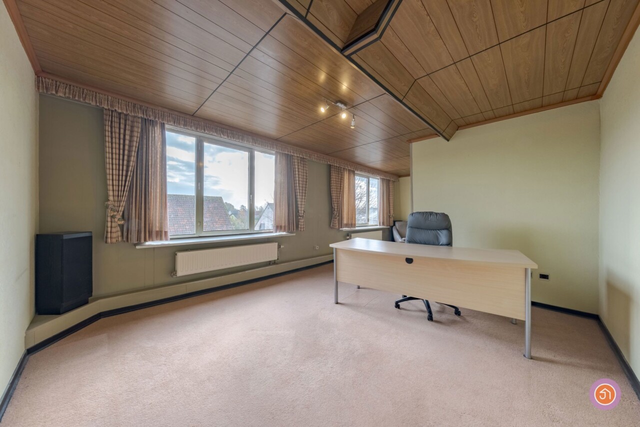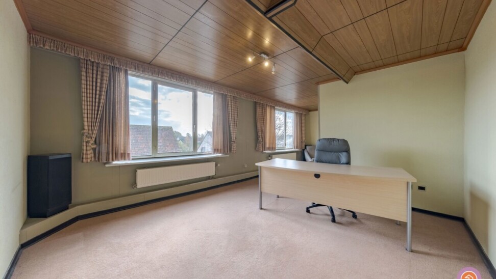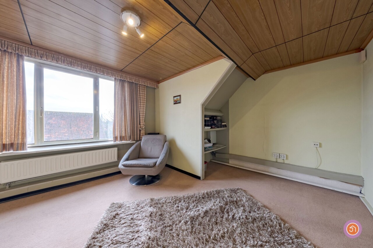 De trap in de hal geeft toegang tot de eerste verdieping waar zich reeds vier ruime slaapkamers bevinden. Via een aparte trap komen we op de tweede verdieping waar zich dan nog eens een ruime studio bevindt. Deze studio is voorzien van een ruime living, een keuken en een badkamer met toilet.