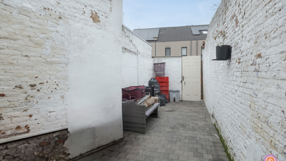 Achteraan de woning vinden we een gezellige koer terug, die een uitweg langs achter biedt.