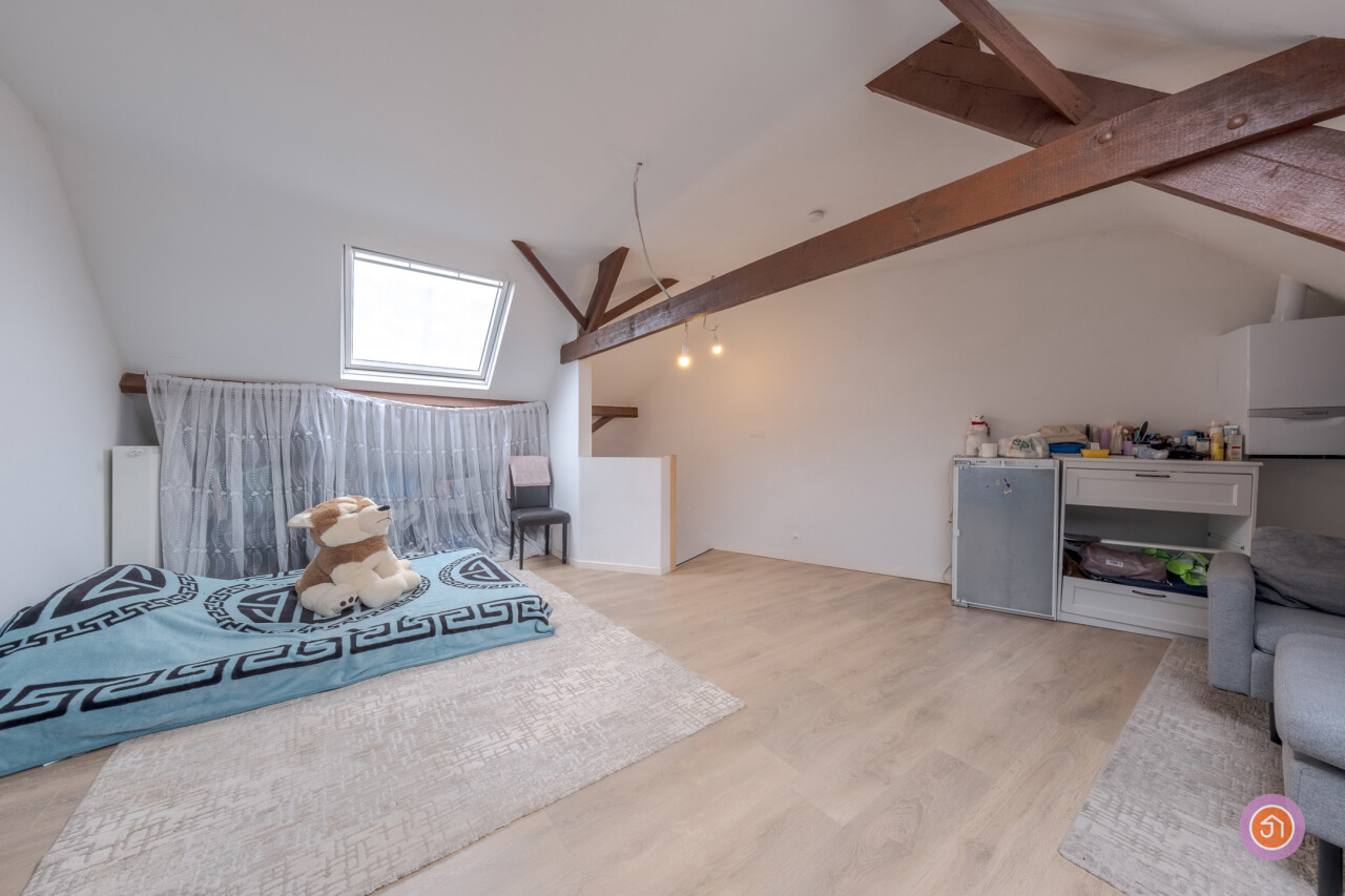 Via een vaste trap bereiken we de zolderverdieping, die werd ingericht als derde slaapkamer.