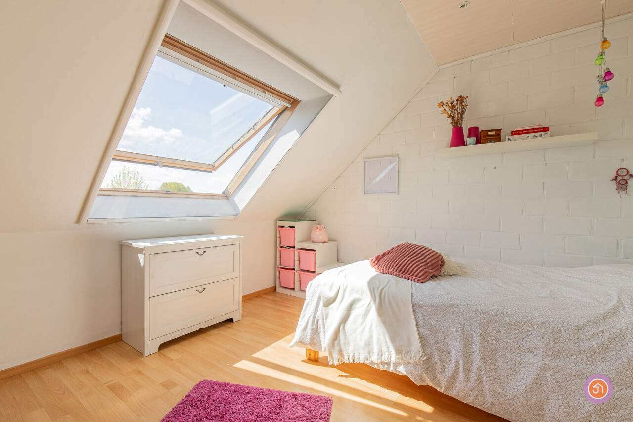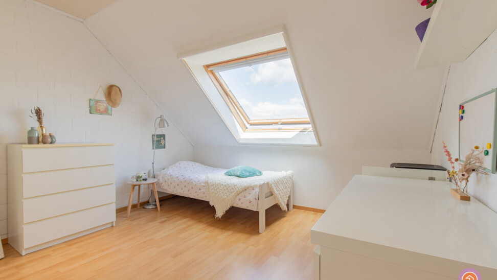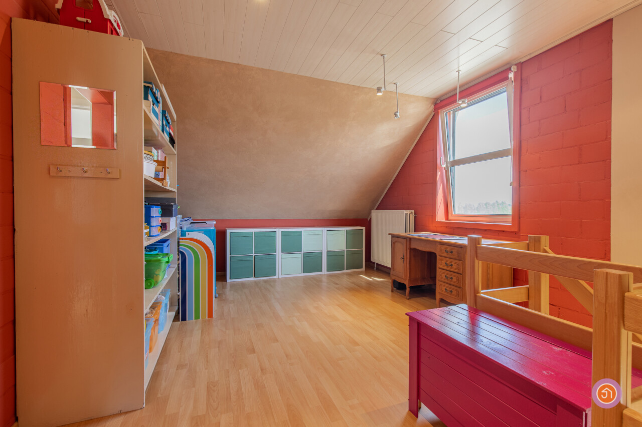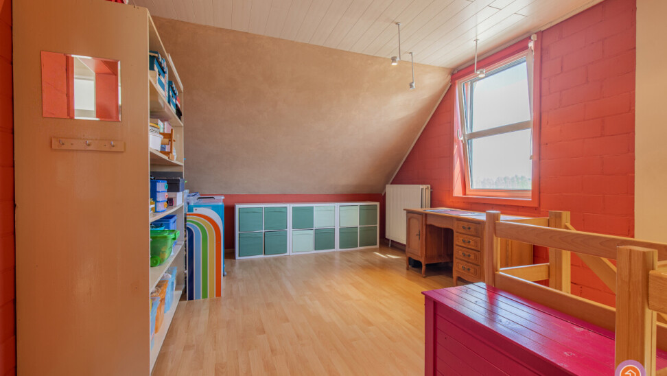 Via de vaste trap bereiken we tweede verdieping waar we twee slaapkamers terugvinden en een veelzijdige ruimte die je kan benutten als hobbyruimte, bureauruimte of dressing.