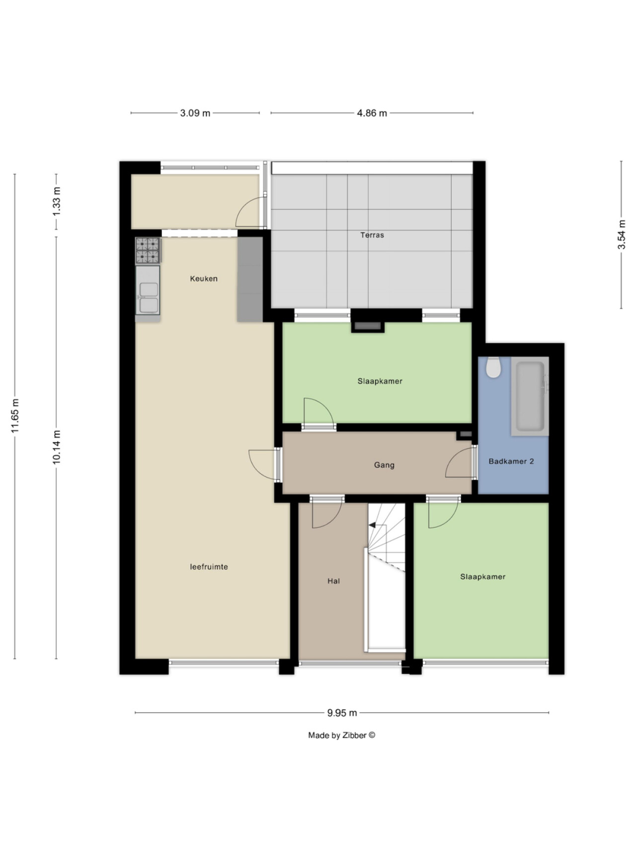 De woning biedt de mogelijkheid om in totaal vijf slaapkamers te creëren.