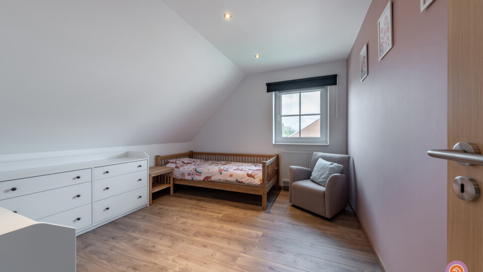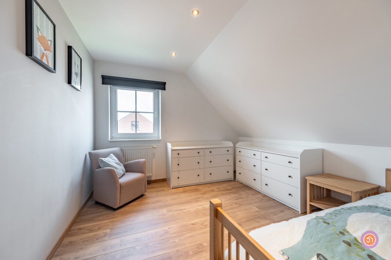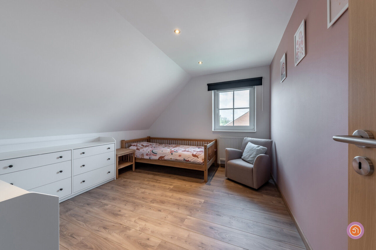 Via de vaste trap bereiken we tweede verdieping waar we twee slaapkamers terugvinden en twee bergruimtes.