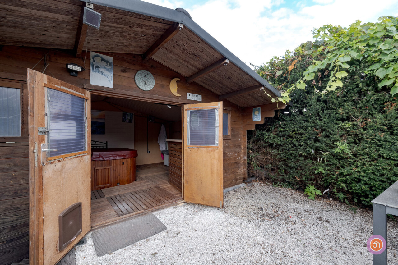 De tuin is verder ook voorzien van een twee tuinhuizen waarvan één met zonnepanelen.
