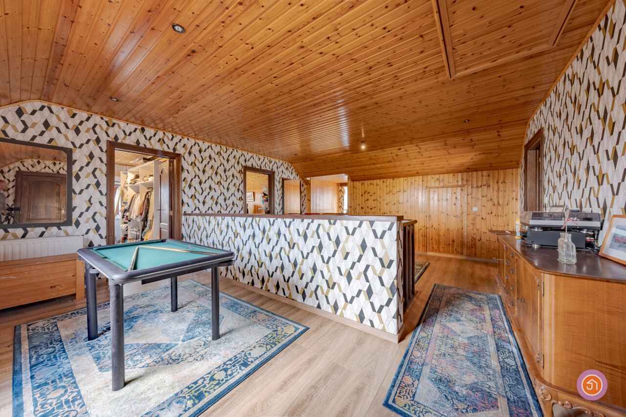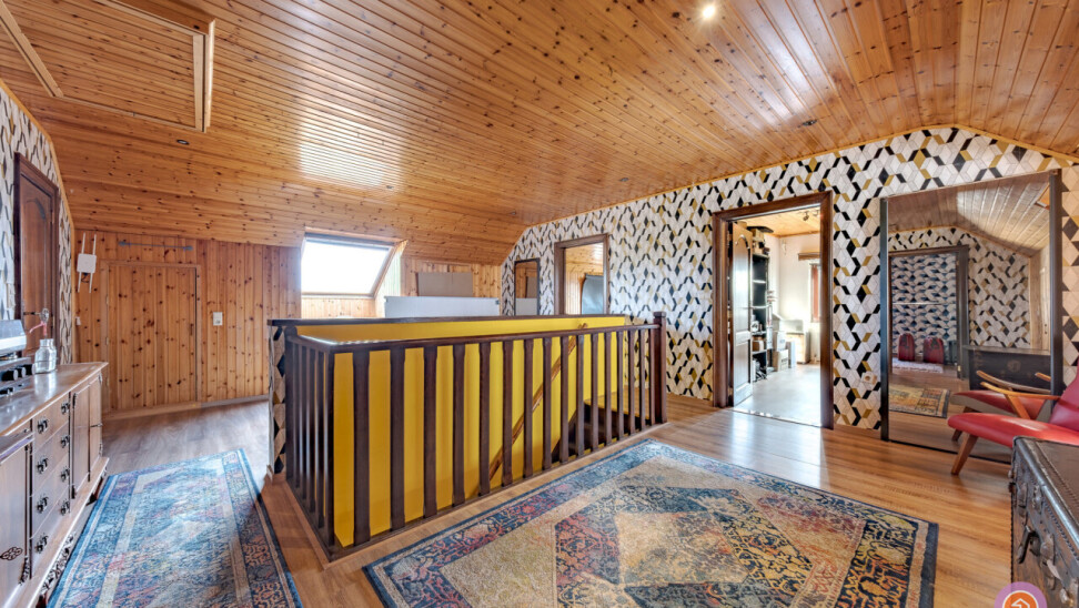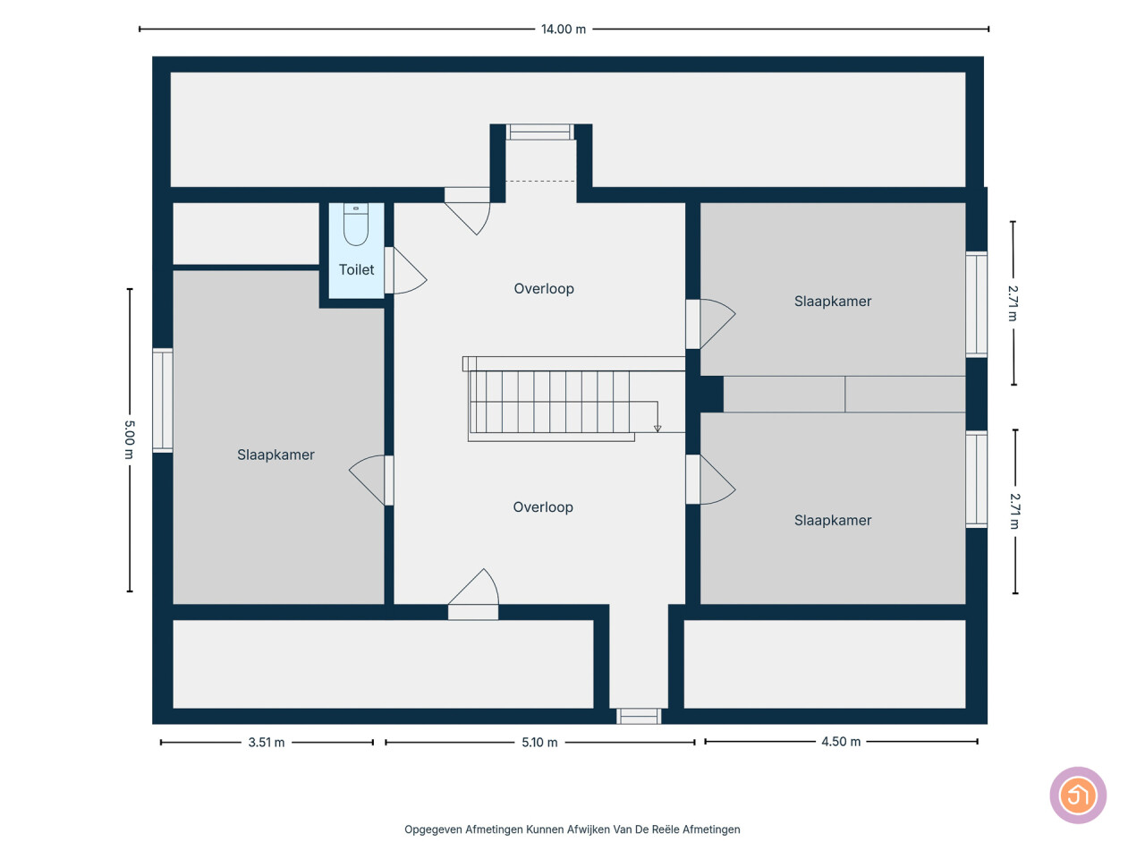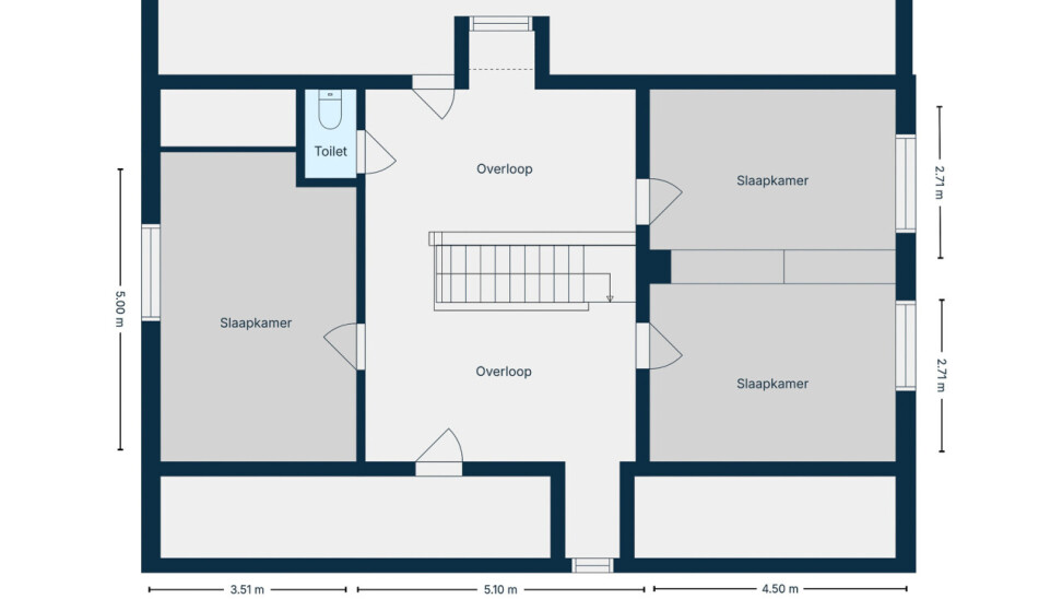 De trap geeft toegang tot de eerste verdieping die bestaat uit drie ruime slaapkamers, een ruime overloop en een apart toilet. Er bestaat een mogelijkheid om een badkamer te voorzien op de eerste verdieping.