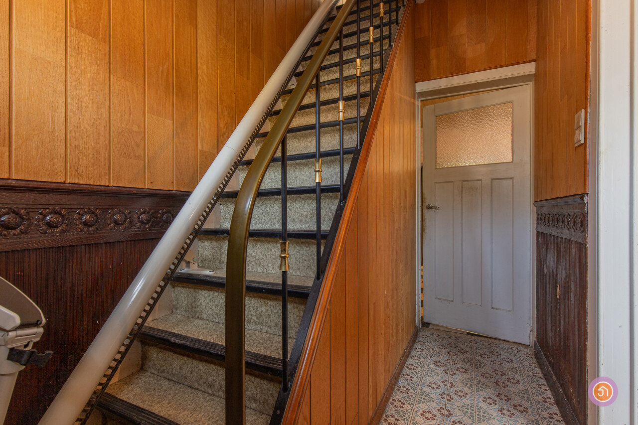 De trap in de hal geeft toegang tot de eerste verdieping waar zich drie slaapkamers bevinden.