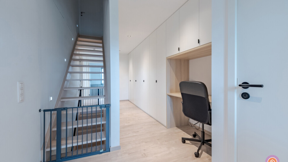 Via een vaste trap in de nachthal bereiken we de ruime zolder (52m²) die mogelijkheden biedt voor het creëren van een extra slaapkamer.