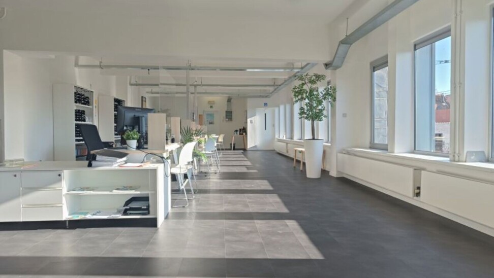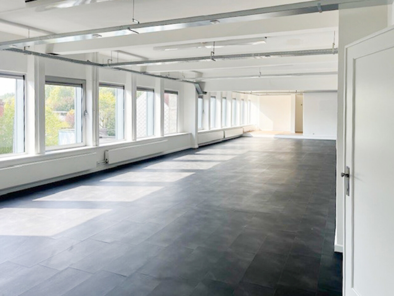 De handelsruimte geniet van een overvloed aan lichtinval door de vele raampartijen.