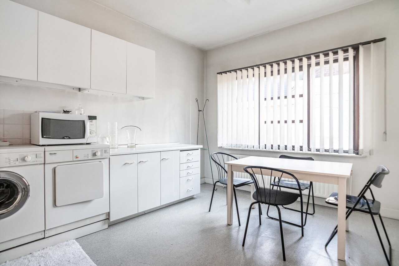 Op het gelijkvloers bevindt zich een praktijkruimte die momenteel ingericht is voor medische doeleinden. De indeling en oppervlakte maken deze ruimte uitermate geschikt voor diverse vrije beroepen zoals een tandarts, kinesitherapeut, huisarts, psycholoog, logopedist, boekhouder of consultant. Bovendien biedt het pand de mogelijkheid om de ruimte flexibel in te delen in meerdere behandelkamers, consultatieruimtes of kantoren, volledig afgestemd op jouw professionele noden.