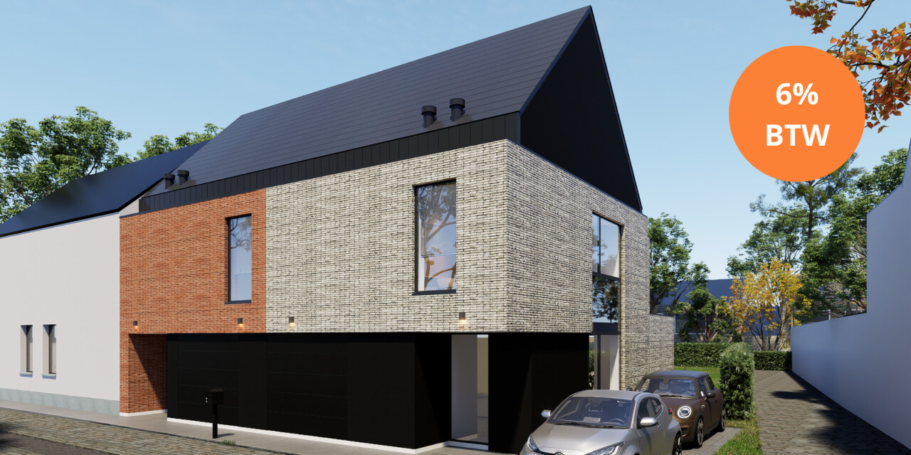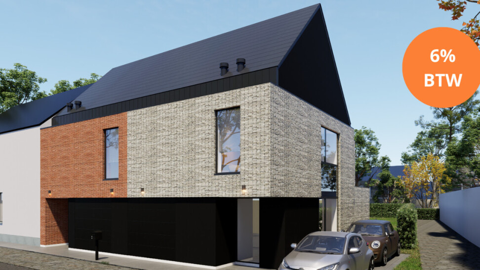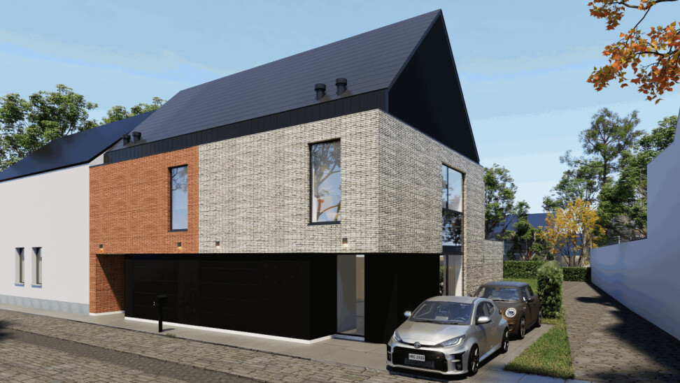 De woningen vallen op door het krachtige samenspel van contrasten en materialen. De combinatie van lichte en warme baksteen met donkere accenten geeft de gevel een uitgesproken, eigentijds karakter, terwijl het hellend dak zorgt voor een tijdloze, vertrouwde toets. Elk detail is doordacht en draagt bij aan een gevoel van rust, ruimte en verfijning.