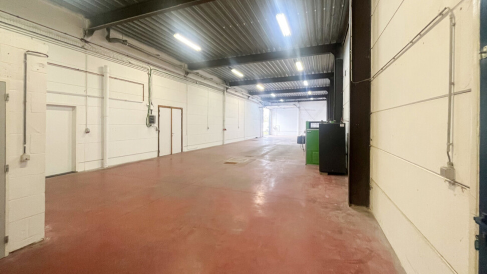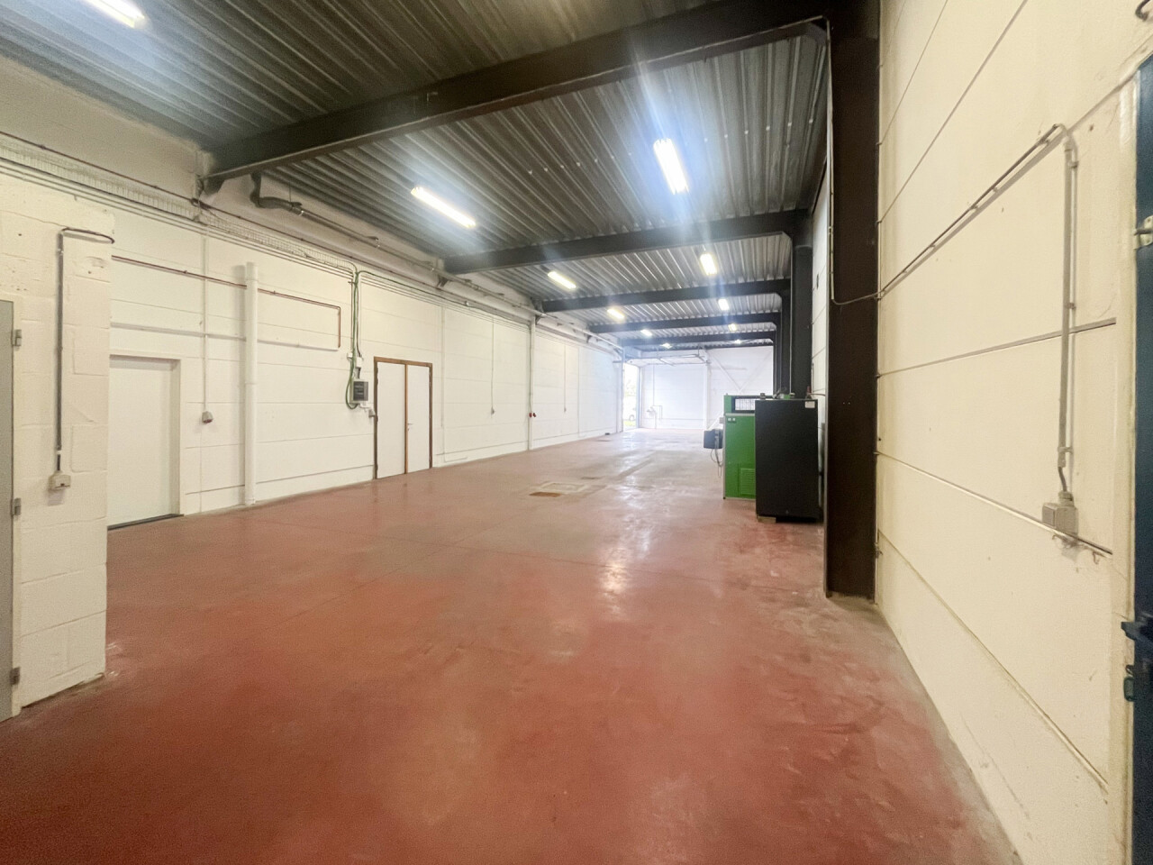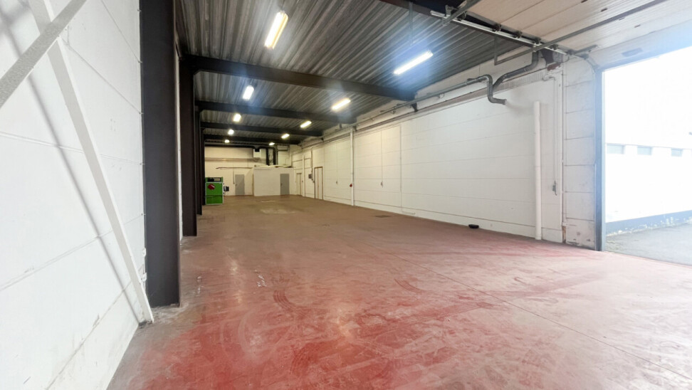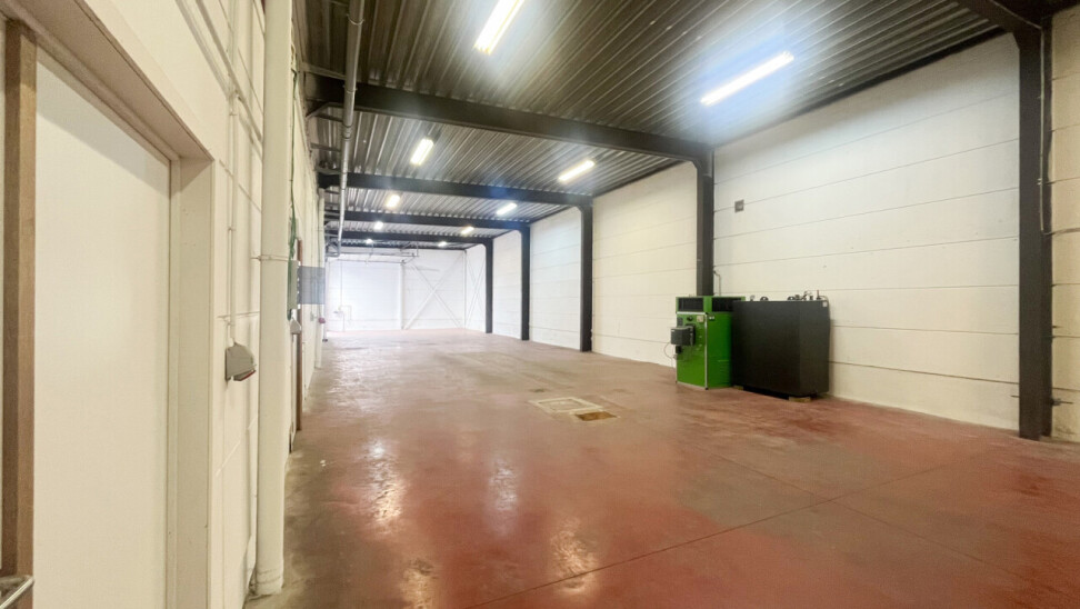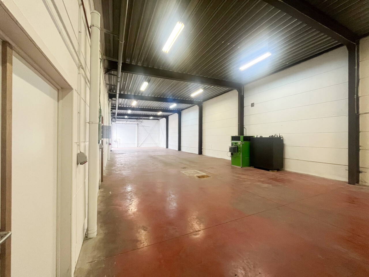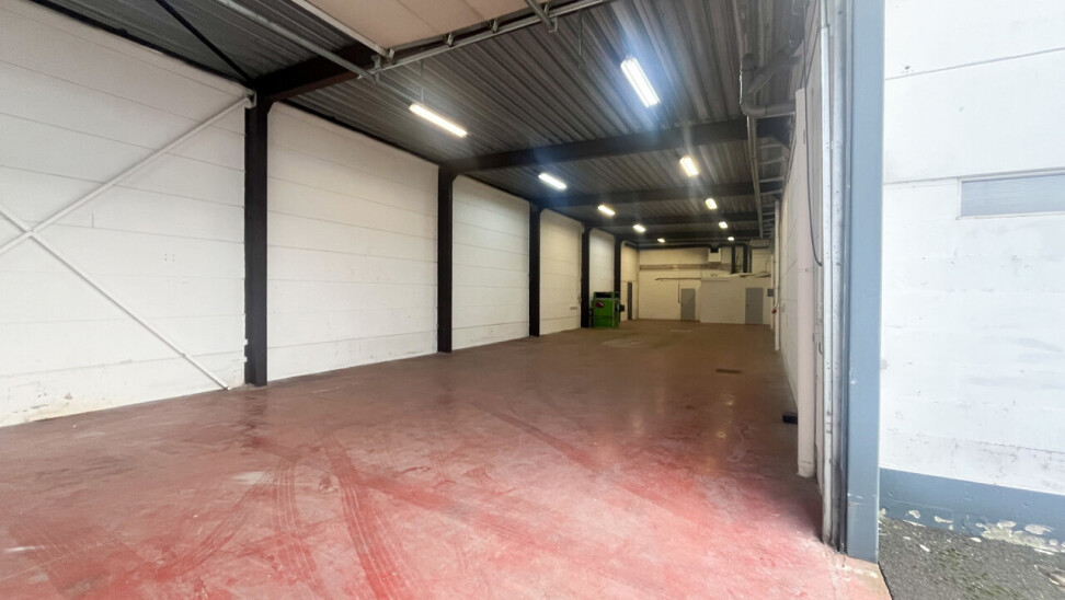 De unit van 300 m² heeft een vrije hoogte van 4,90 meter en is voorzien van een sectionaalpoort. Verlichting, stopcontacten en een toilet zijn aanwezig.