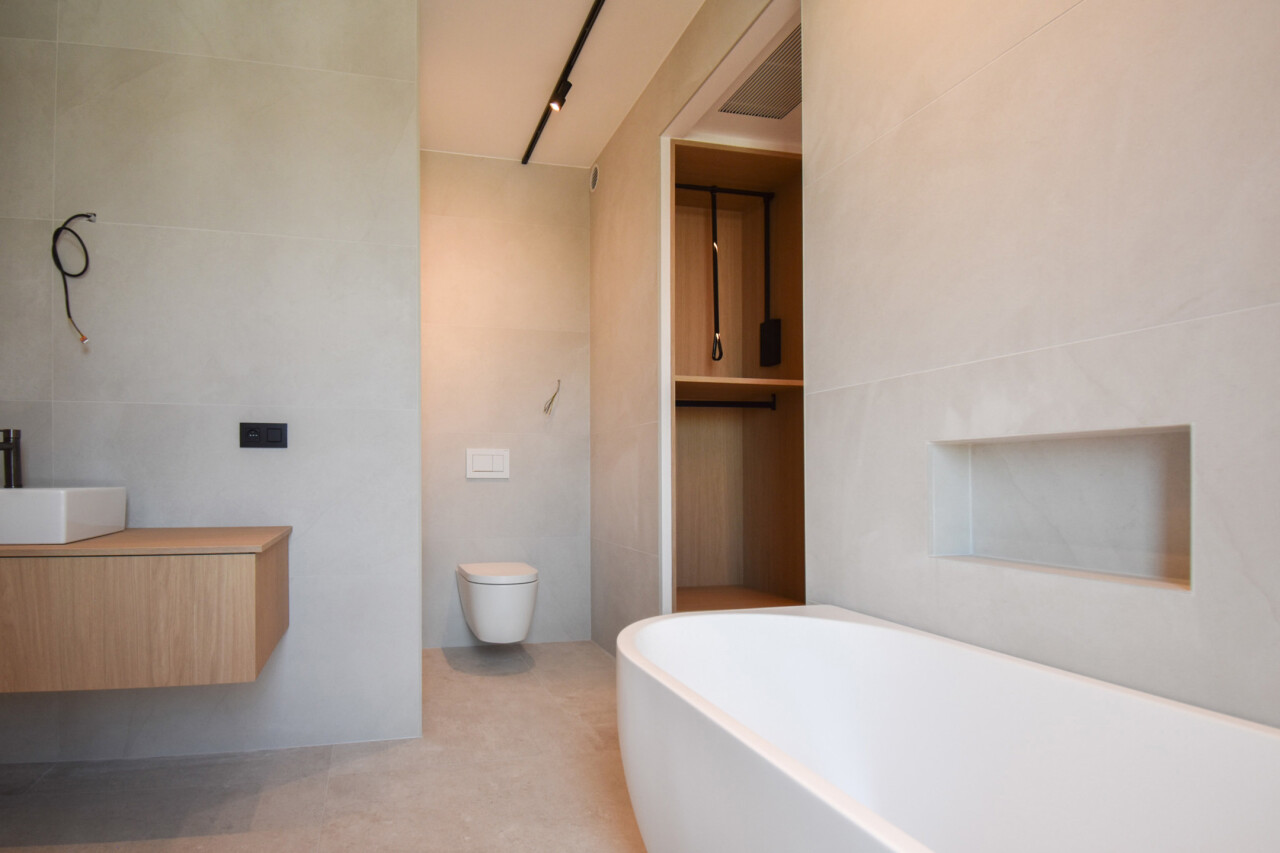 Op de ondergrondse verdieping vinden we nog een autostaanplaats en een ruime privatieve kelderberging terug.