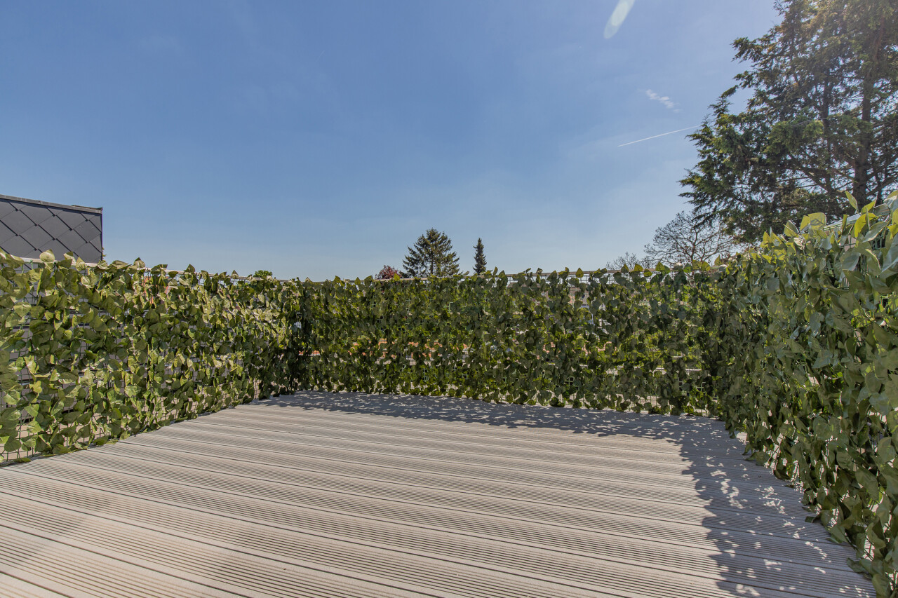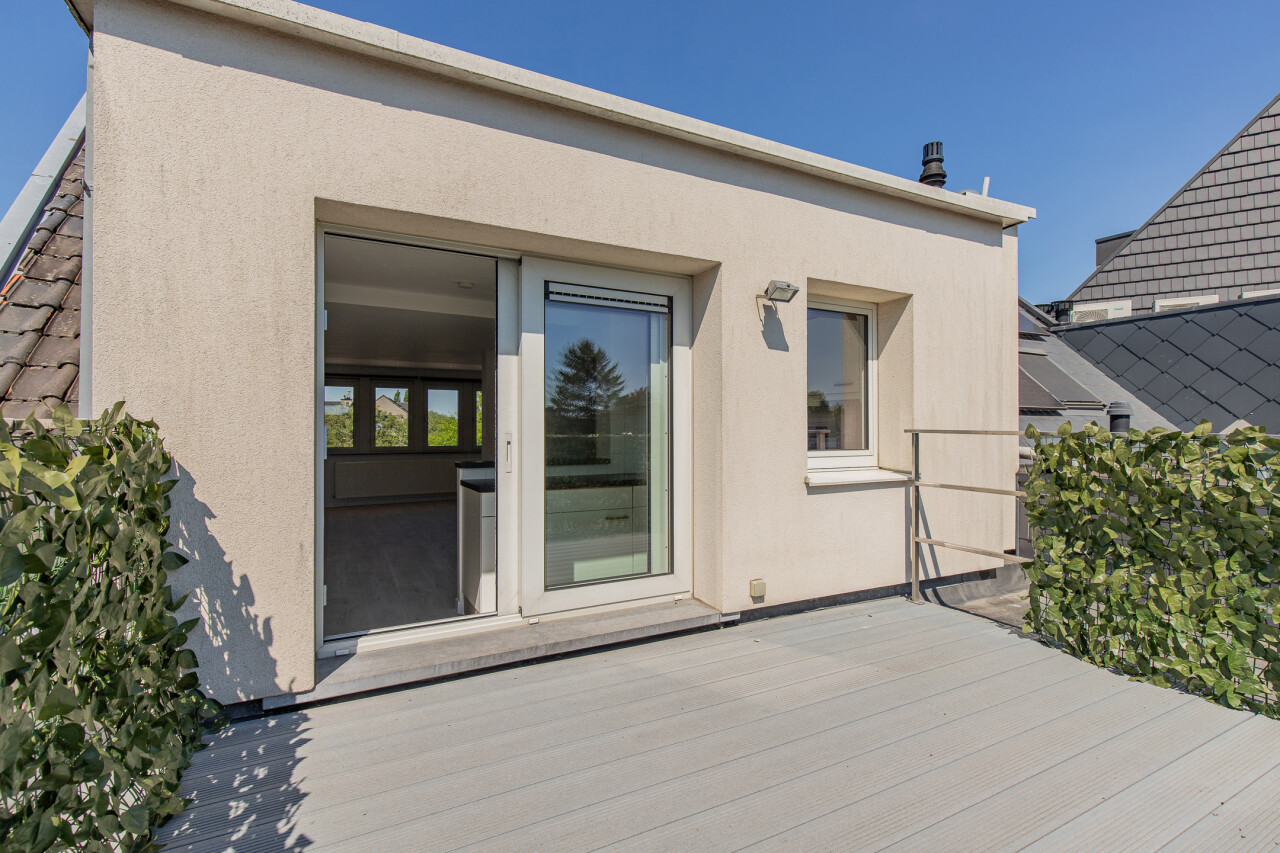 Via de hal komen we in de lichtrijke leefruimte met aansluitend de keuken die uitgeeft op een zeer ruim terras. Dit terras is bovendien zuidelijk gelegen en biedt volledige privacy, een uniek gegeven in centrum Bornem. Ideaal om te genieten van een lekker aperitiefje.