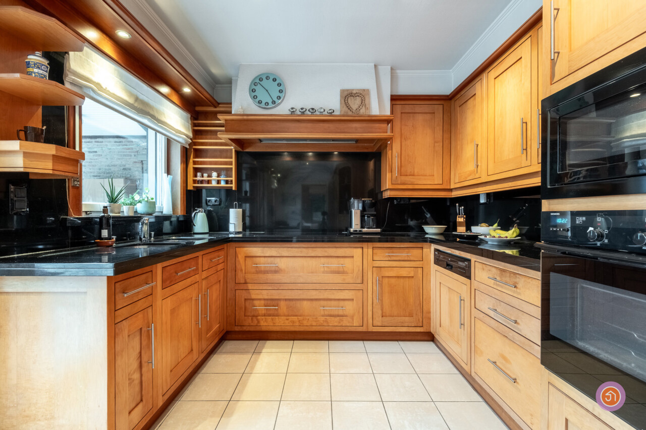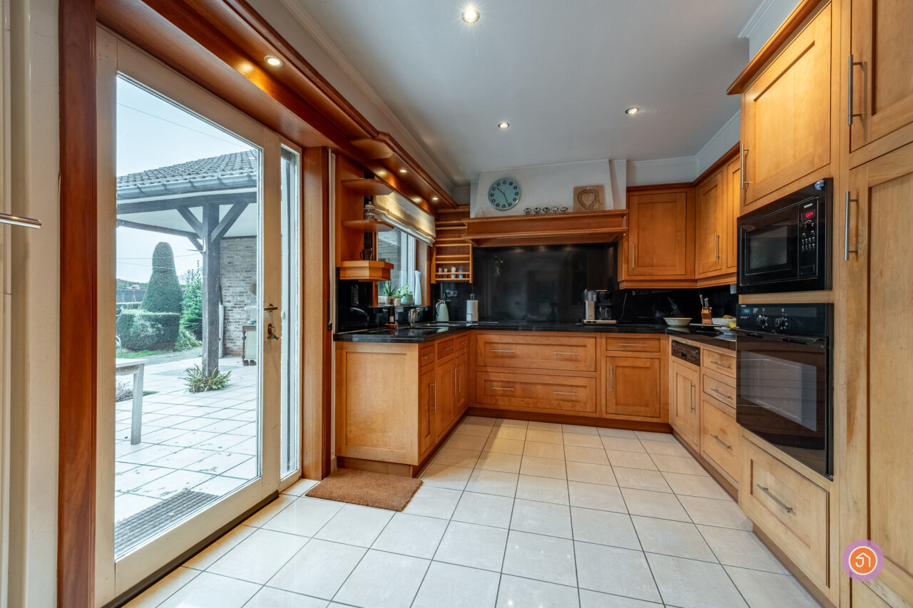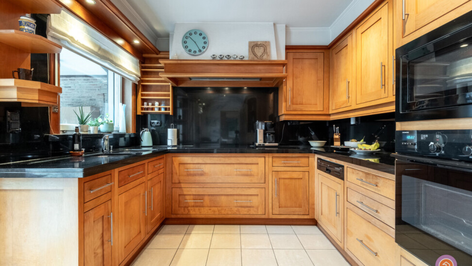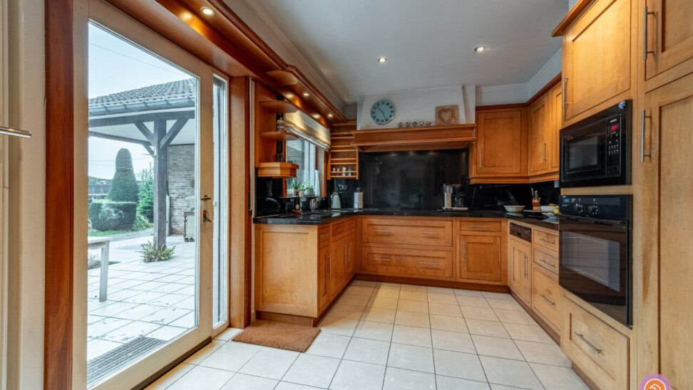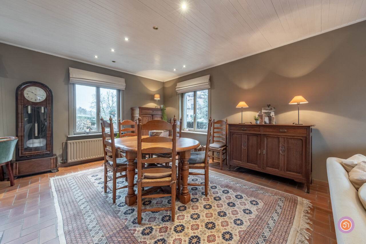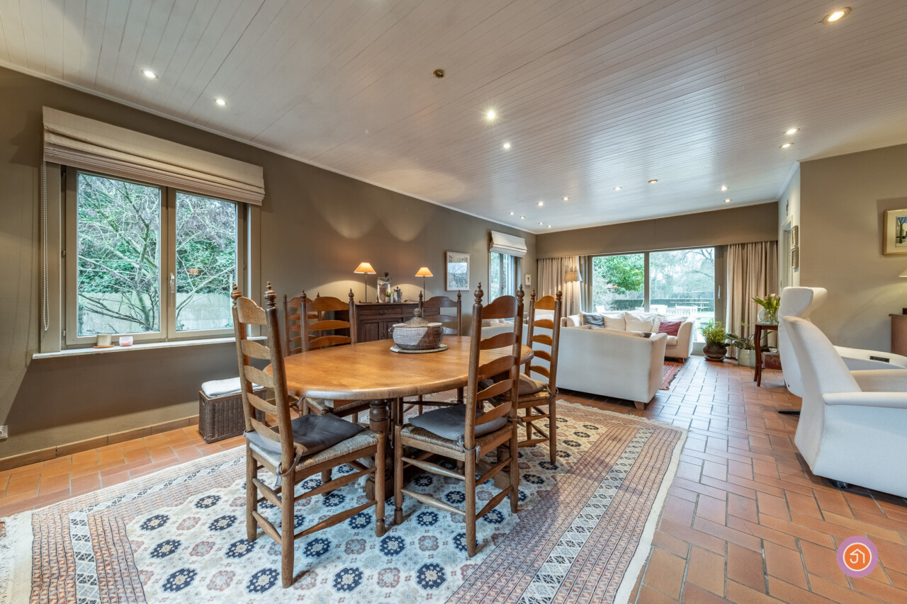 Bij het betreden van de woning kom je terecht in de inkomhal. Vanuit de inkomhal betreden we de ruime en open leefruimte met aansluitend de zeer uitgeruste keuken. Vanuit de salon heb je een prachtig zicht op de diepe tuin. Verder heb je nog een tweede zithoek rond de open haard, ideaal voor wie 's avonds van warme gezelligheid houdt.