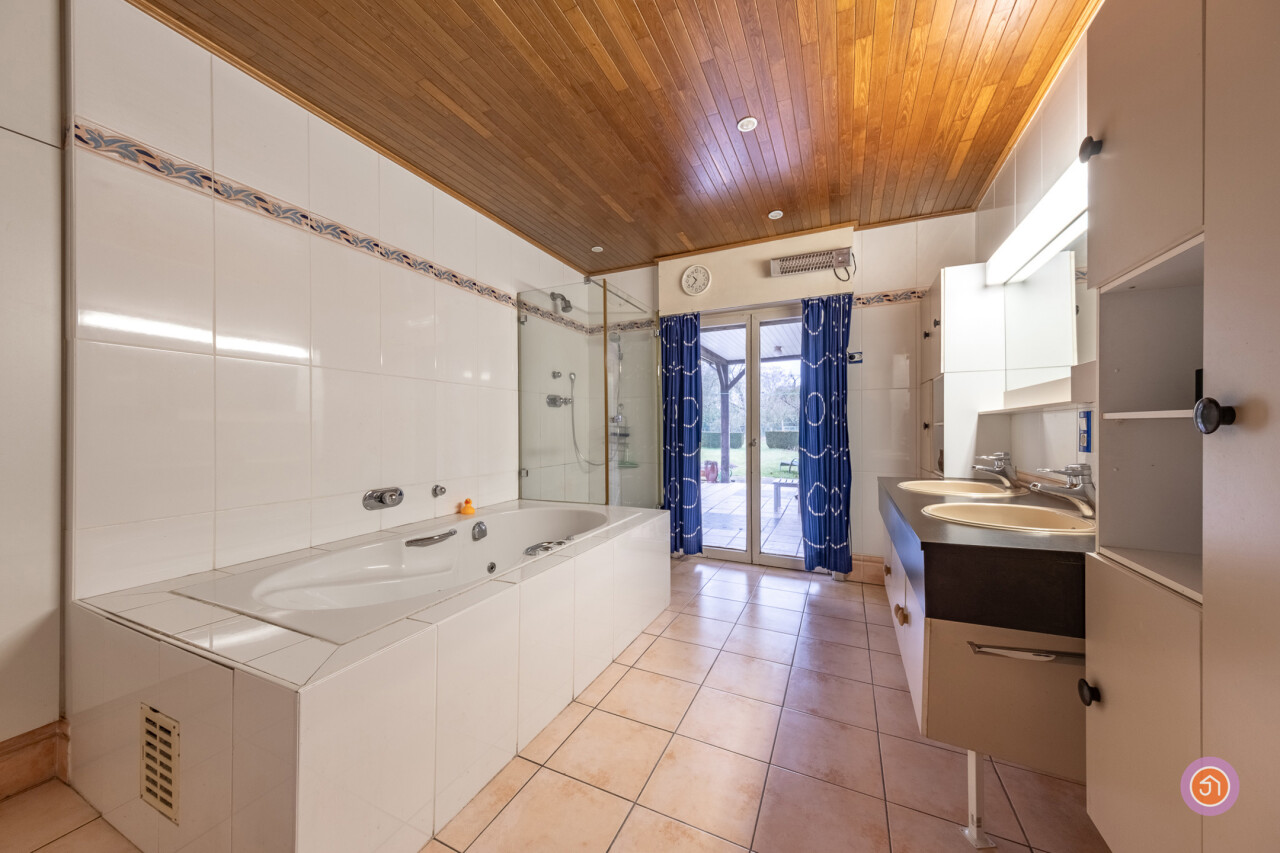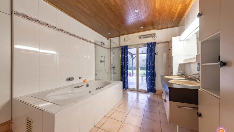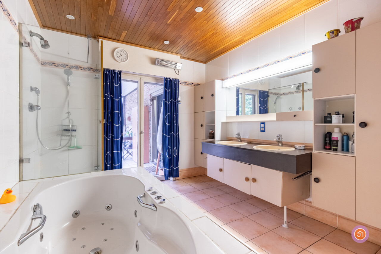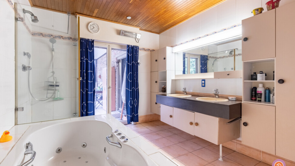 Verder treffen wij drie ruime slaapkamers aan, alsook een gastentoilet en een badkamer voorzien van bad, douche en dubbele lavabo.